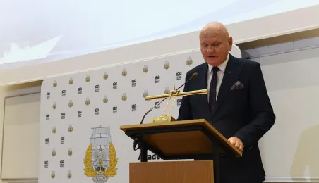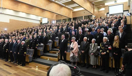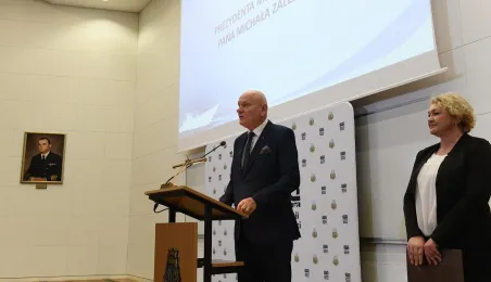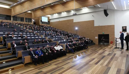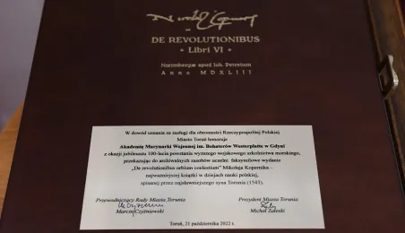 21 października 2022 r. w Gdyni odbyły się obchody 100. rocznicy powstania wyższego wojskowego szkolnictwa morskiego. Uroczystość w Akademii Marynarki Wojennej w Gdyni zgromadziła oficerów, podoficerów, marynarzy i podchorążych tej szkoły na czele z rektorem komendantem kontradmirałem prof. dr. hab. Tomaszem Szubrychtem. Obecni byli prezydent RP Andrzej Duda i minister obrony narodowej Mariusz Błaszczak. Toruń reprezentowali prezydent Torunia Michał Zaleski, dyrektorka Wydziału Promocji i Turystyki Ewa Banaszczuk-Kisiel i wiceprzewodnicząca Rady Miasta Dagmara Tuszyńska. Fot. Krzysztof Miłosz/AMW
