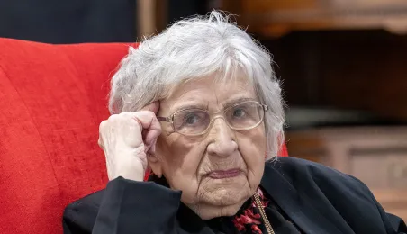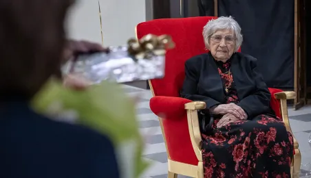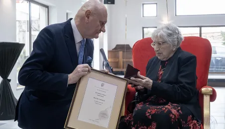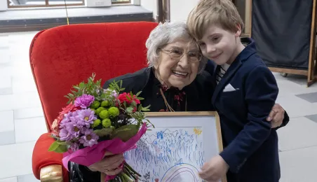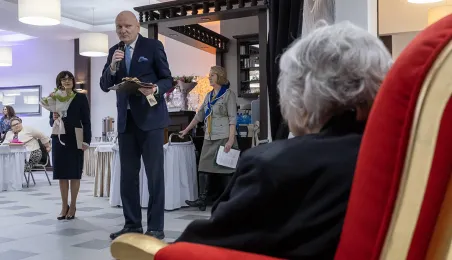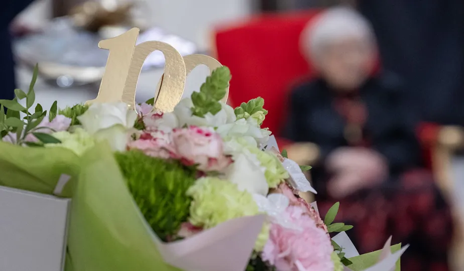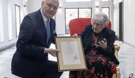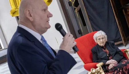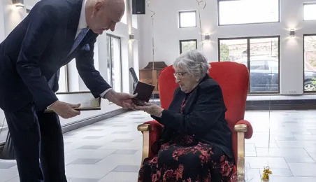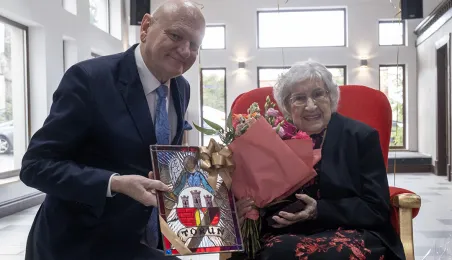 3 lutego 2024 r. swoje 100. urodziny obchodziła Beata Chomicz harcerka, łączniczka AK i przewodniczka po Toruniu. Z jubilatką spotkał się Prezydent Torunia Michał Zaleski. / fot. Wojtek Szabelski