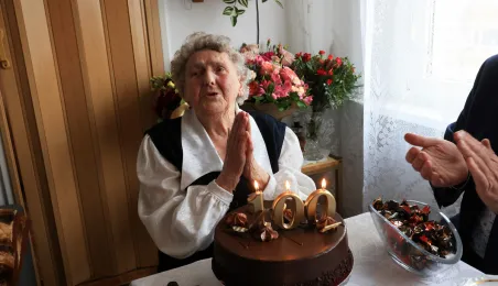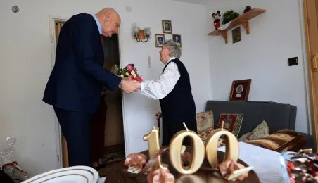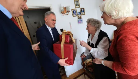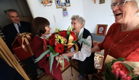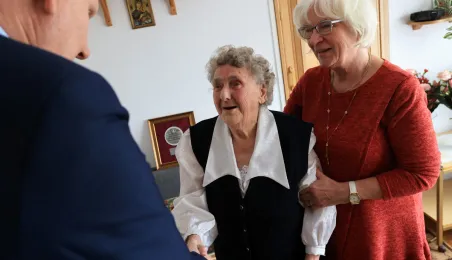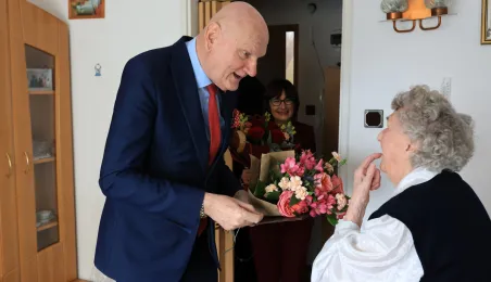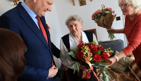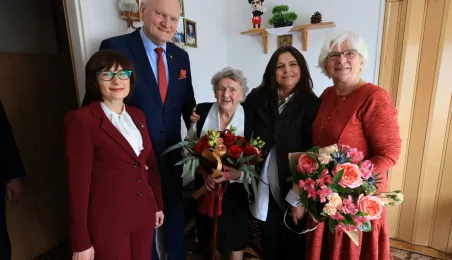 13 marca 2023 r. Prezydent Torunia Michał Zaleski odwiedział Panią Bernadetę Ruszkiewicz, która świętuje swoje 100. urodziny. Nie zabrakło kwiatów, prezentów i wspomnień. / fot. Sławomir Kowalski