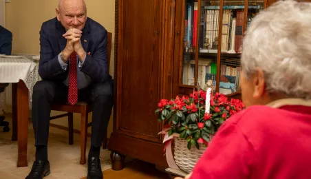 20 lutego br. Pani Małgorzata Barbara Kruszewska obchodziła 100. urodziny. Z tej okazji, 29 lutego 2024 r. z jubilatką spotkał się Prezydent Torunia Michał Zaleski. / fot. Agnieszka Bielecka