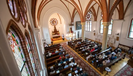 16 czerwca 2024 r. wierni skupieni w parafii ewangelicko-augsburskiej obchodzili 120-lecie istnienia swojej świątyni - kościoła św. Szczepana. W uroczystości wziął udział zastępca prezydenta Rafał Pietrucień. Fot. Agnieszka Bielecka