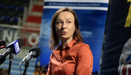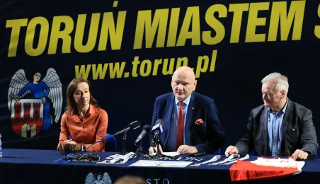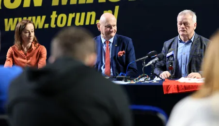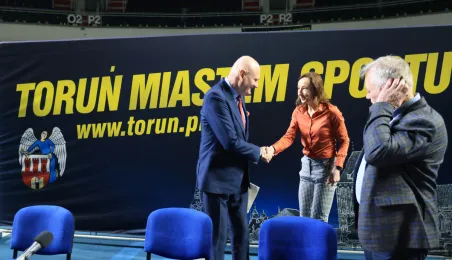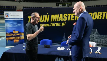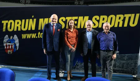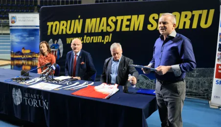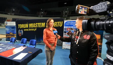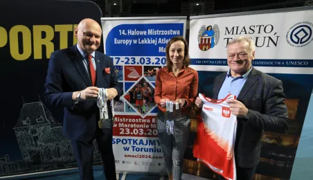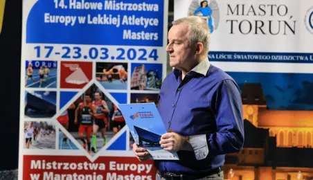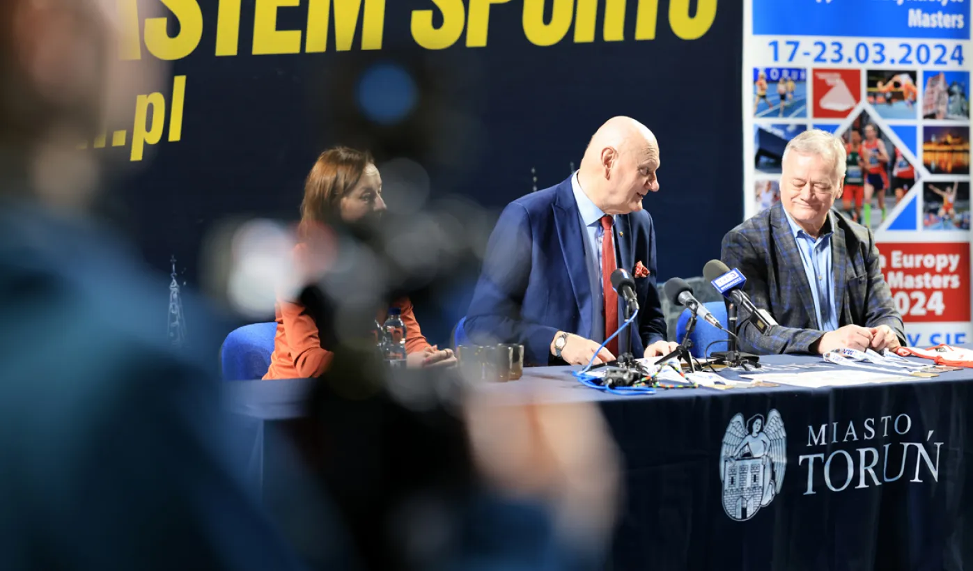 17 marca 2024 r. w Toruniu ruszają 14. Halowe Mistrzostwa Europy w Lekkiej Atletyce Masters. O wydarzeniu, jego organizacji i uczestnikach rozmawiano podczas konferencji prasowej, jaka odbyła się 13 marca 2024 r. w Arenie Toruń. W spotkaniu udział wzięli: prezydent Michał Zaleski, Wacław Krankowski – prezes Polskiego Związku Lekkiej Atletyki Masters i Dorota Dutkowska – zawodniczka masters, sprinterka, srebrna i brązowa medalistka tegorocznych halowych mistrzostw Polski. Fot. Sławomir Kowalski