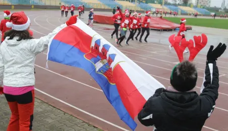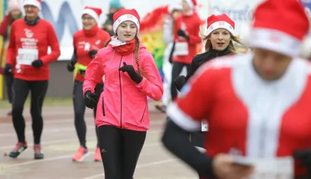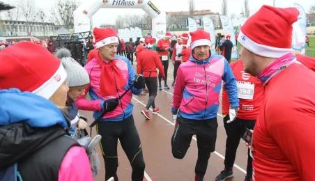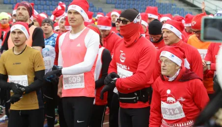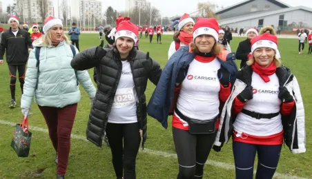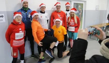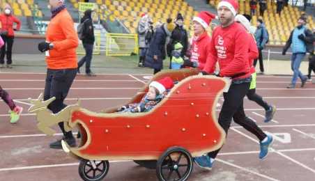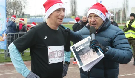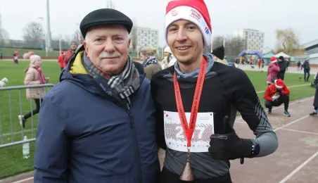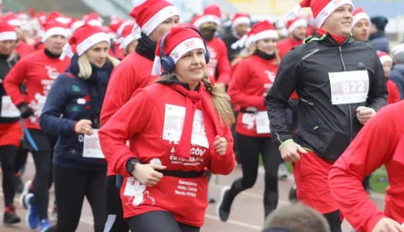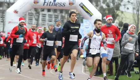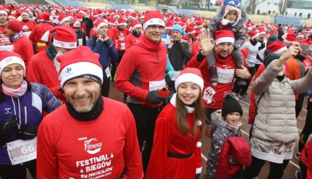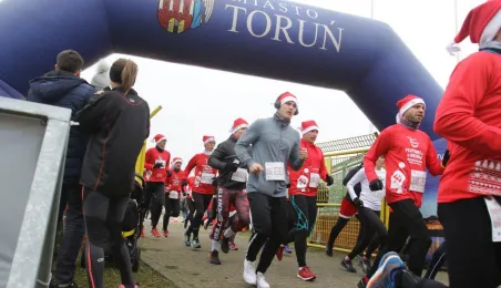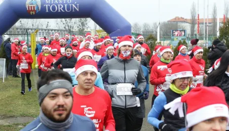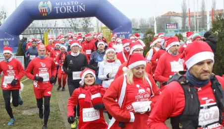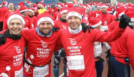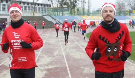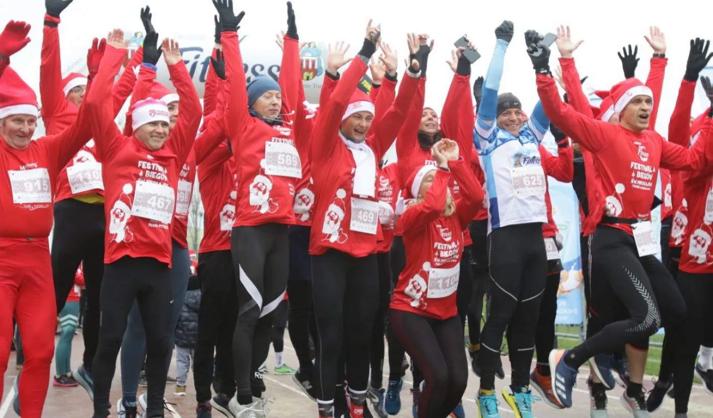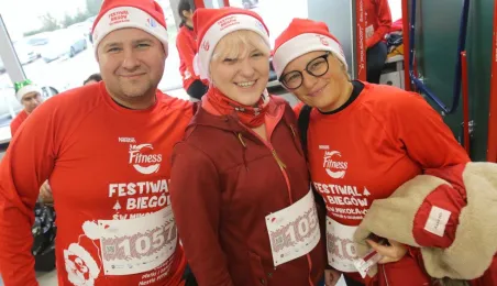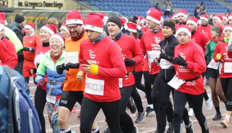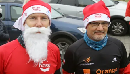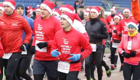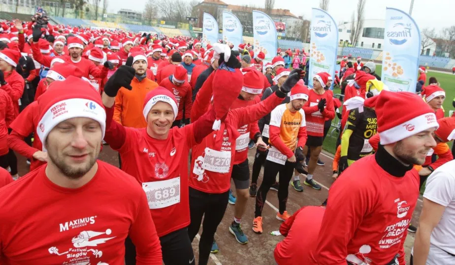 Ponad 1300 osób wzięło udział w 19. Festiwalu Biegów Świętego Mikołaja, który odbył się 5 grudnia 2021 roku. W 2021 roku biegacze wystartowali na trasach półmaratonu, 10 km i 5 km. Pięciokilometrową trasę pokonywali także zawodnicy nordic walking. Fot. Adam Zakrzewski