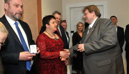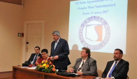 20-lecie działalności świętował 31 marca 2017 r. Związek Miast Nadwiślańskich. Organizacja, założona w 1997 r. przez Toruń i Gdańsk, zrzesza dzisiaj 24 miasta leżące nad Wisłą, które wspólnie działają na rzecz przywrócenia rzece należnej rangi. Podczas uroczystosci jubileuszowych osoby zasłużone dla stowarzyszenia otrzymały Krzyże Związku Miast Nadwiślańskich. Wyjątkowym wyróżnieniem - Pierścieniem Hallera - został uhonorowany prezydent Torunia Michał Zaleski. Fot. Małgorzata Litwin