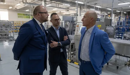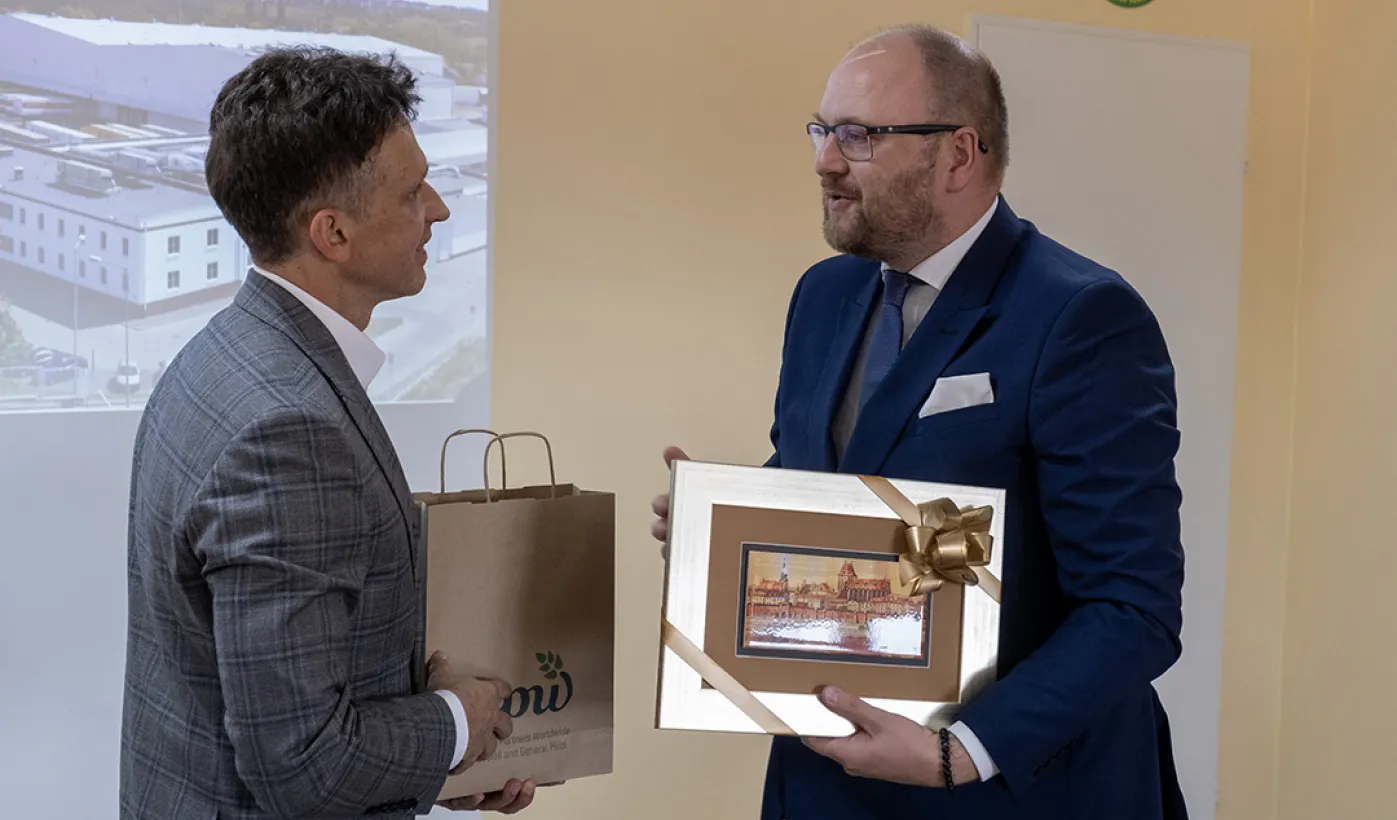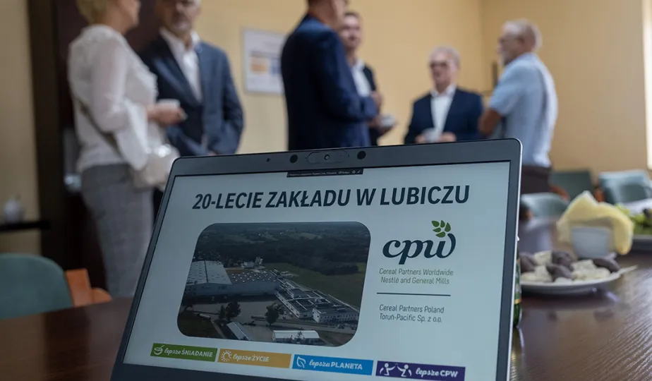 Zakład Cereal Partners Poland Toruń-Pacific (CPP) w Lubiczu świętuje 20-lecie działalności. W spotkaniu z tej okazji wzięli udział zastępca prezydenta Paweł Gulewski oraz Łukasz Szarszewski, dyrektor Centrum Wsparcia Biznesu. Fot. Wojtek Szabelski