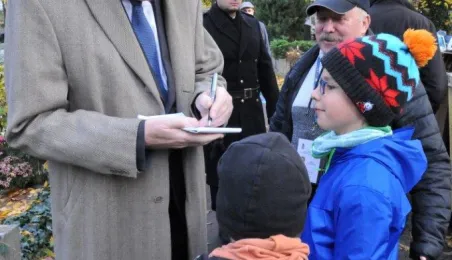 Prawie 80 osób, znanych torunian i gości miasta kwestowało 1 listopada 2023 r. na renowację zabytkowych nagrobków cmentarza św. Jerzego. Zbiórka przyniosła znakomity wynik - do puszek trafiło prawie 25 tys. zł. Fot. Małgorzata Litwin