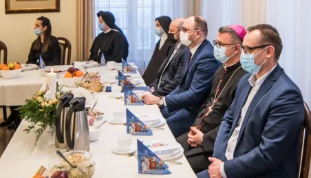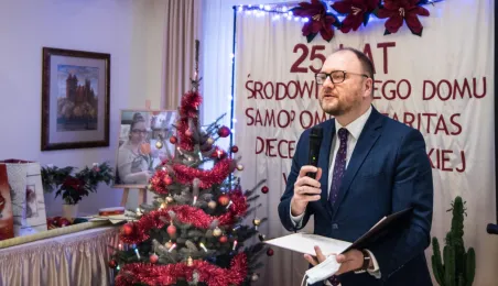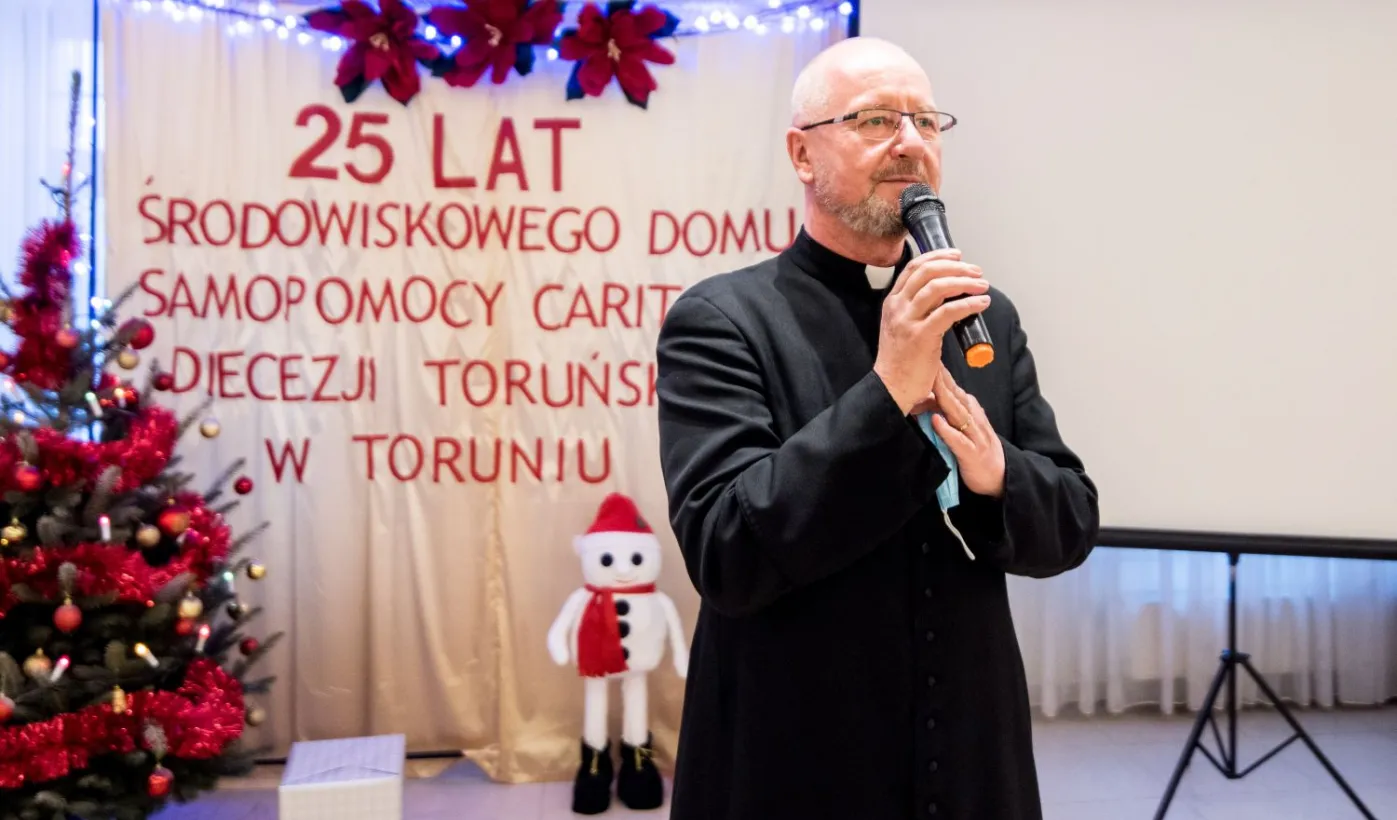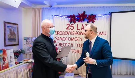 Od 25 lat działa Środowiskowy Dom Samopomocy Caritas Diecezji Toruńskiej. Jubileuszowe spotkanie z tej okazji odbyło się 14 grudnia 2021 r. w Ośrodku Szkoleniowym Caritas Diecezji Toruńskiej w Przysieku. Miasto reprezentował na niej zastępca prezydenta Torunia Paweł Gulewski. Fot. Lech Kamiński