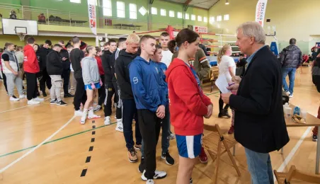 W dniach 8-9 października 2022 r. w sali sportowej SP nr 3 rozgrywany jest 26. Międzynarodowy Turniej Bokserski im. Zygmunta Krygiera. W otwarciu turnieju wziął udział prezydent Michał Zaleski. Fot. Lech Kamiński