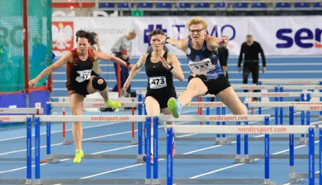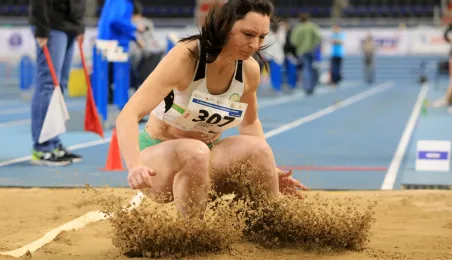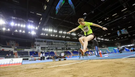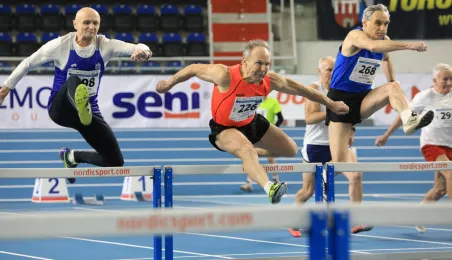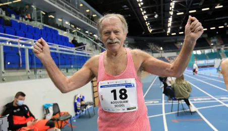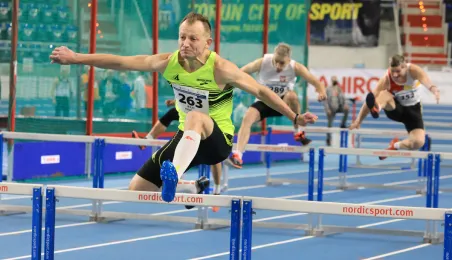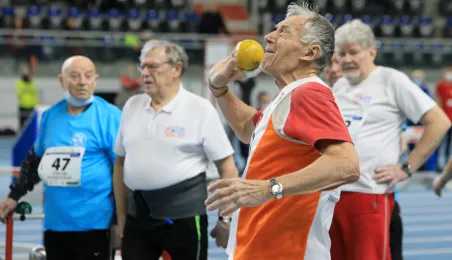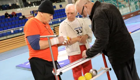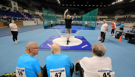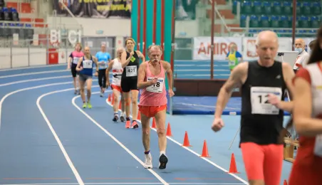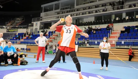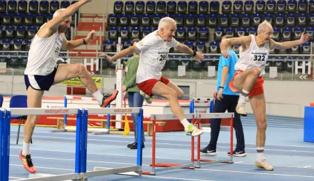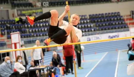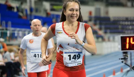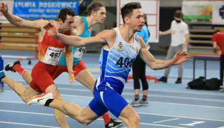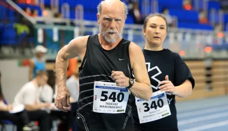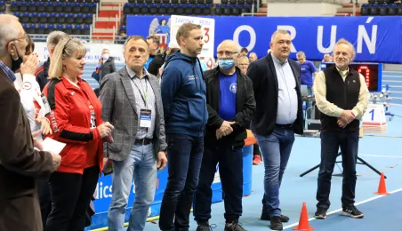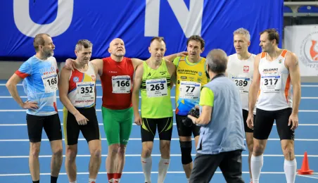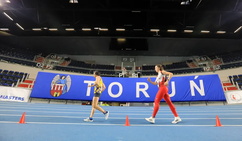 W Arenie Toruń 12 lutego 2022 r. zostały rozegrane 31. Halowe Mistrzostwa Polski w Lekkiej Atletyce Masters. Ponad 500 zawodników z całej Polski rywalizowało w dyscyplinach lekkoatletycznych: biegach, biegach przez płotki i chodach, rzucie kulą, trójskoku oraz skokach w dal i wzwyż. Fot. Sławomir Kowalski