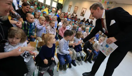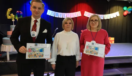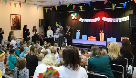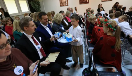 17 listopada 2023 r. odbył się jubileusz 40-lecia istnienia Przedszkola Miejskiego nr 2 im. Jana Brzechwy. W uroczystości udział wzięli zastępca prezydenta Adrian Mól i zastępczyni dyrektorki Wydziału Edukacji Katarzyna Nowicka-Skuza. Fot. Sławomir Kowalski