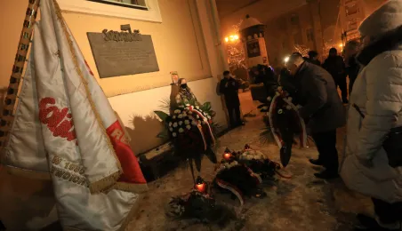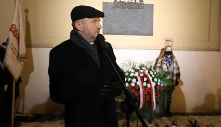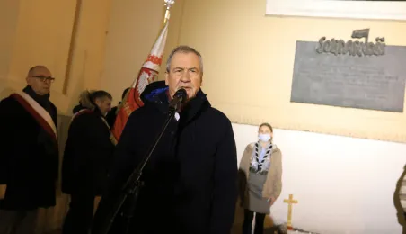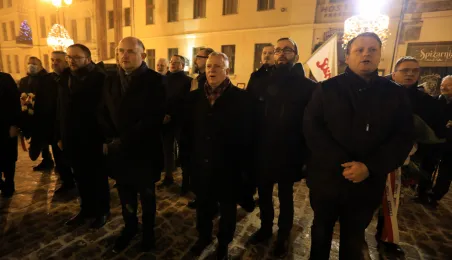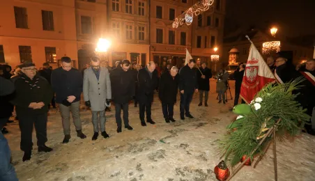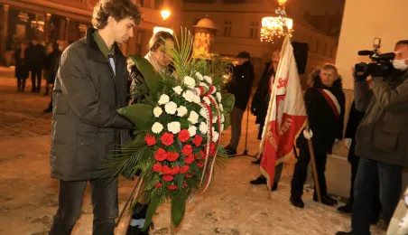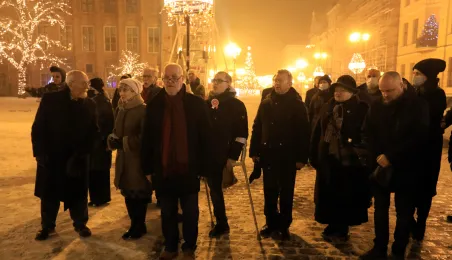12 grudnia 2021 roku tuż przed północą, w noc przed rocznicą wprowadzenia stanu wojennego w Polsce, przedstawiciele władz miasta i opozycji antykomunistycznej spotkali się pod kościołem akademickim w Toruniu. Pod tablicą upamiętniającą patriotyczną manifestację złożono kwiaty i zapalono znicze. Fot. Sławomir Kowalski