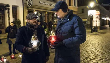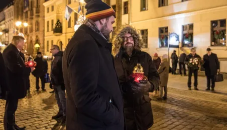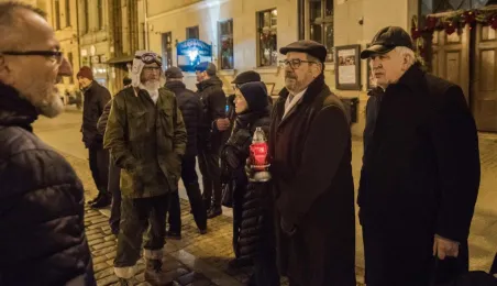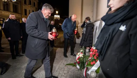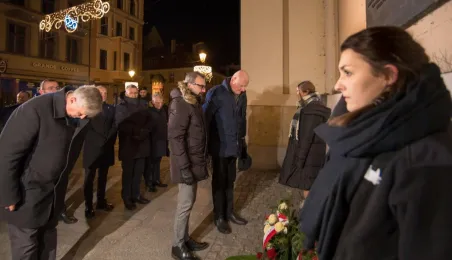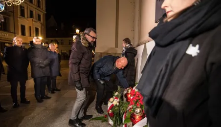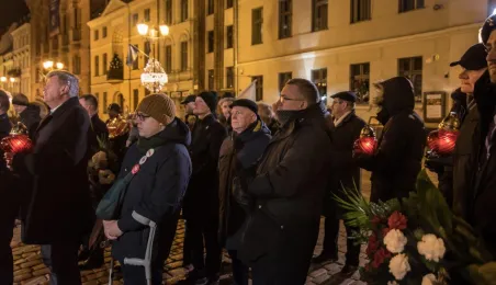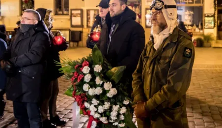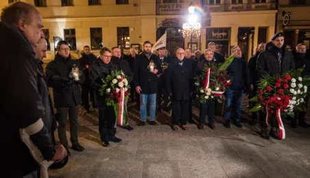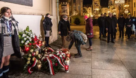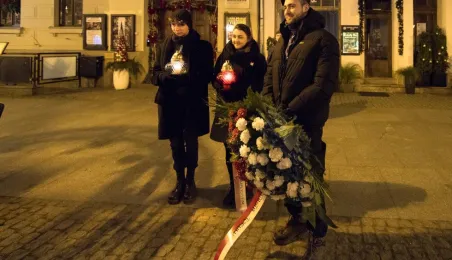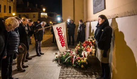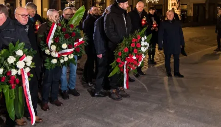 O północy w nocy z 12 na 13 grudnia 2022 r. przedstawiciele samorządu, opzycji antykomunistycznej, harcerstwa, złożyli kwiaty pod tablicą upamiętniającą patriotyczną manifestację, która znajduje się na kościele akademickim. Pod tablicą złożono kwiaty i zapalono znicze. Fot. Lech Kamiński