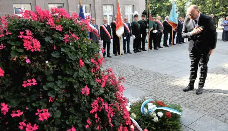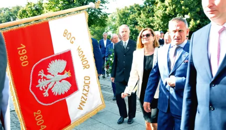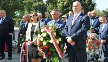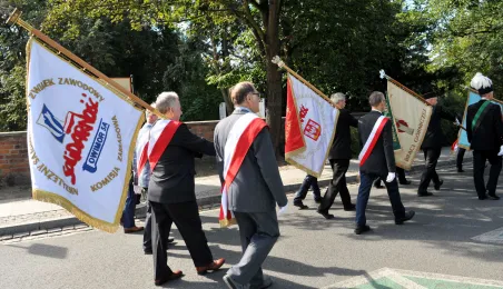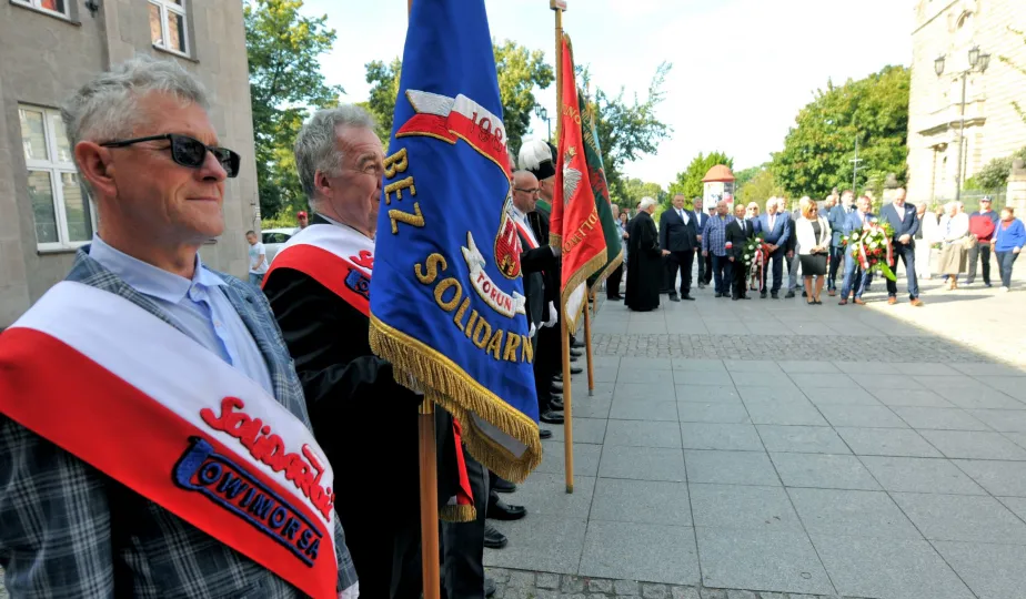 Związkowcy z Torunia, Inowrocławia i Grudziądza uczestniczyli w Toruniu 4 września 2022 r. w uroczystościach z okazji 42. rocznicy podpisania Porozumień Sierpniowych i powstania Niezależnego Samorządnego Związku Zawodowego "Solidarność". Samorząd toruński reprezentował zastępca prezydenta Paweł Gulewski. Fot. Małgorzata Litwin