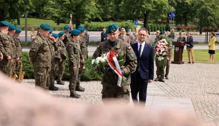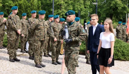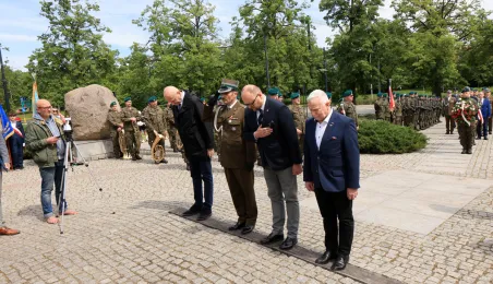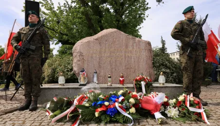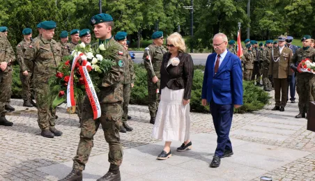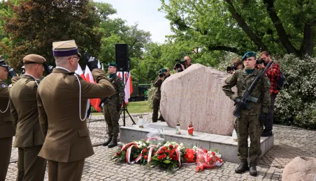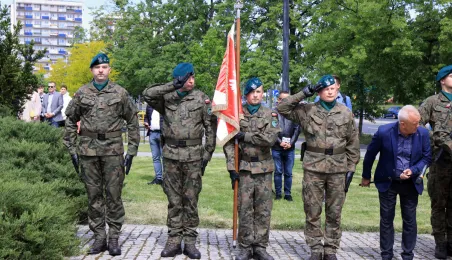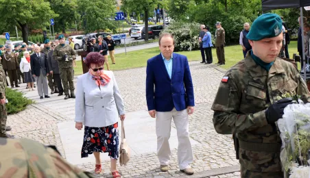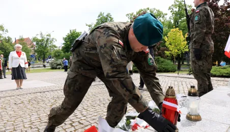8 maja 2024 roku, w 79. rocznicę zakończenia II wojny światowej, w toruńskich miejscach pamięci złożono kwiaty i zapalono znicze. Główna uroczystość upamiętniająca 79. rocznicę zakończenia II wojny światowej odbyła się przed pomnikiem Ofiar Hitleryzmu na skwerze im. Oficerskiej Szkoły Artylerii w asyście wojskowej. W wydarzeniu udział wziął prezydent Paweł Gulewski. Fot. Sławomir Kowalski