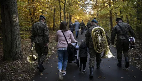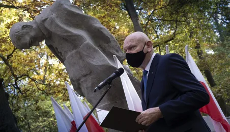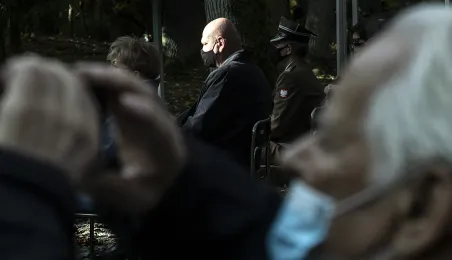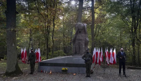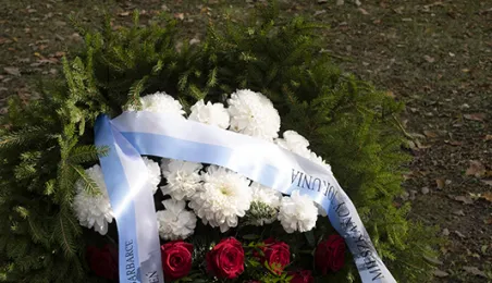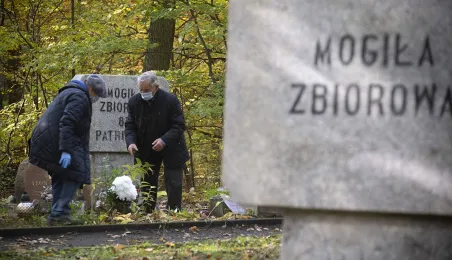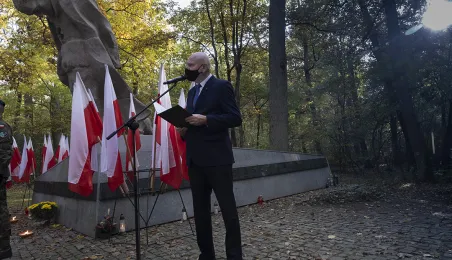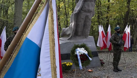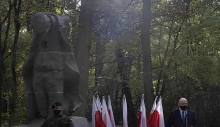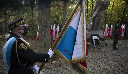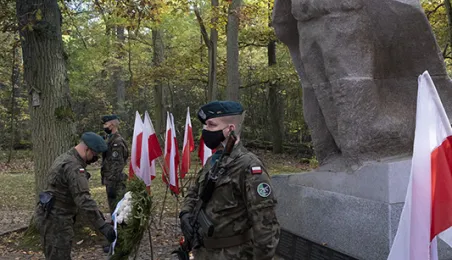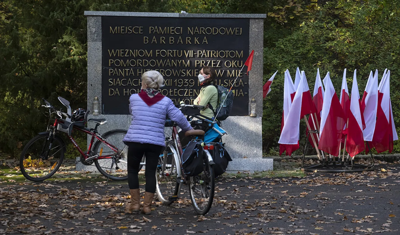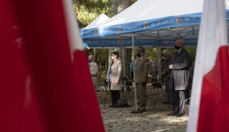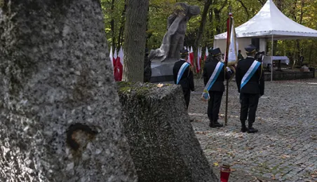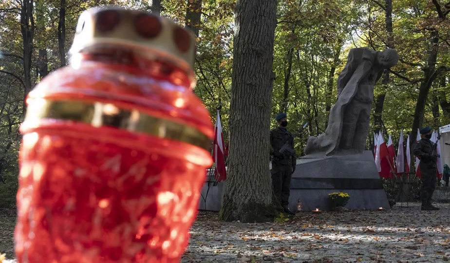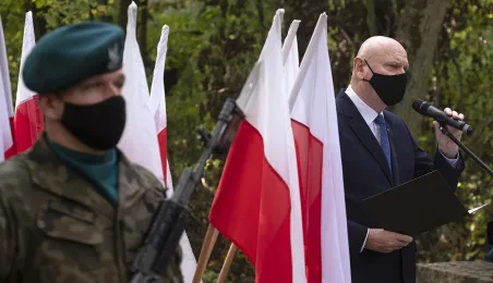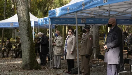 Plenerowa Msza św. i uroczystość pod pomnikiem ofiar pierwszych straceń w 1939 r. odbyły się w dniu 25 października 2020 r. na Barbarce. Z uwagi na obostrzenia wynikające z pandemii złożono jeden wspólny wieniec w miejscu pamięci. Fot. Wojtek Szabelski