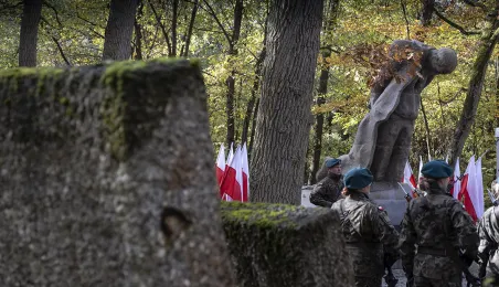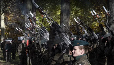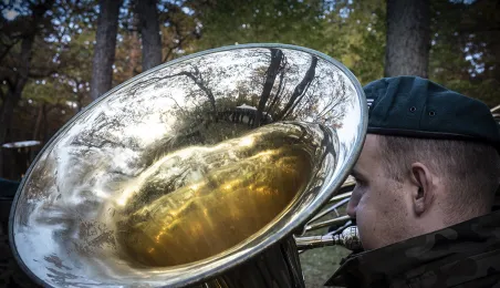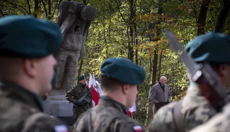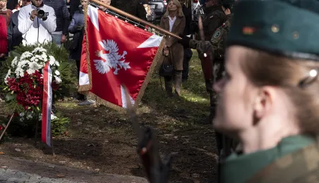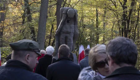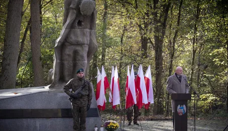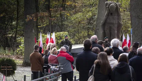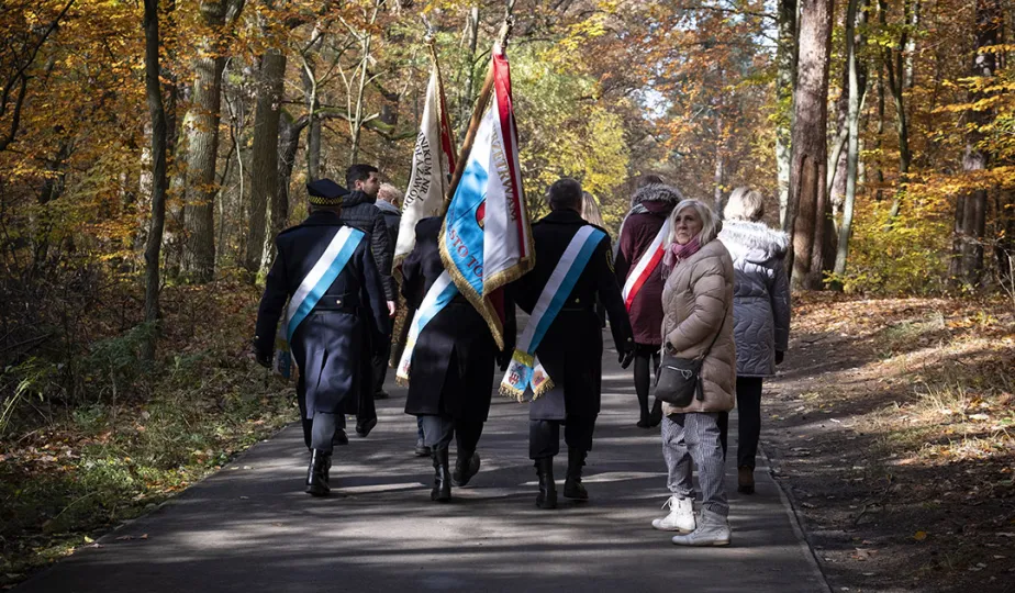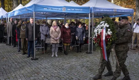 W Miejscu Pamięci Narodowej na Barbarce 24 października 2021 r. torunianie oddali hołd mieszkańcom Torunia pomordowanym przez hitlerowców po wybuchu wojny. Uroczystość zgromadziła Rodziny Ofiar Barbarki, parlamentarzystów, kombatantów, samorządowców z Torunia i powiatu, duchownych, harcerzy i wojsko. Oprawę muzyczną uroczystości zapewniła orkiestra Garnizonu Toruń. Fot. Wojtek Szabelski