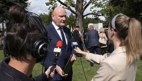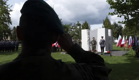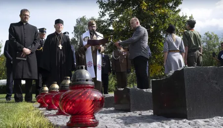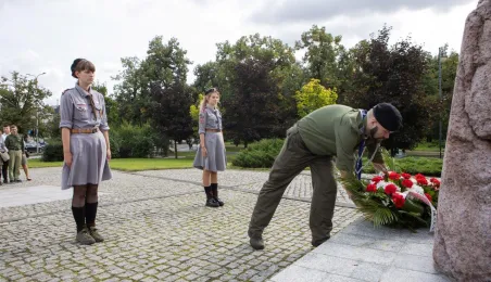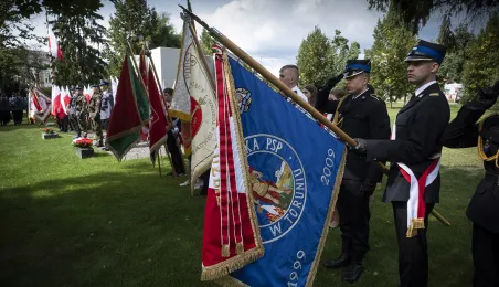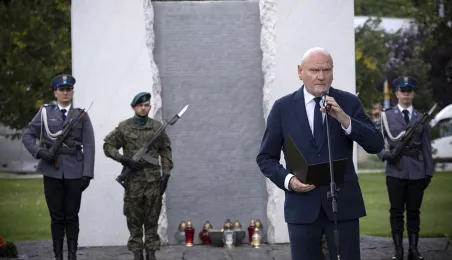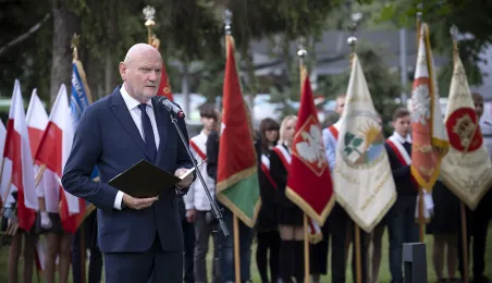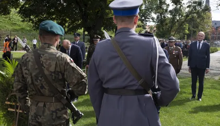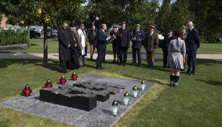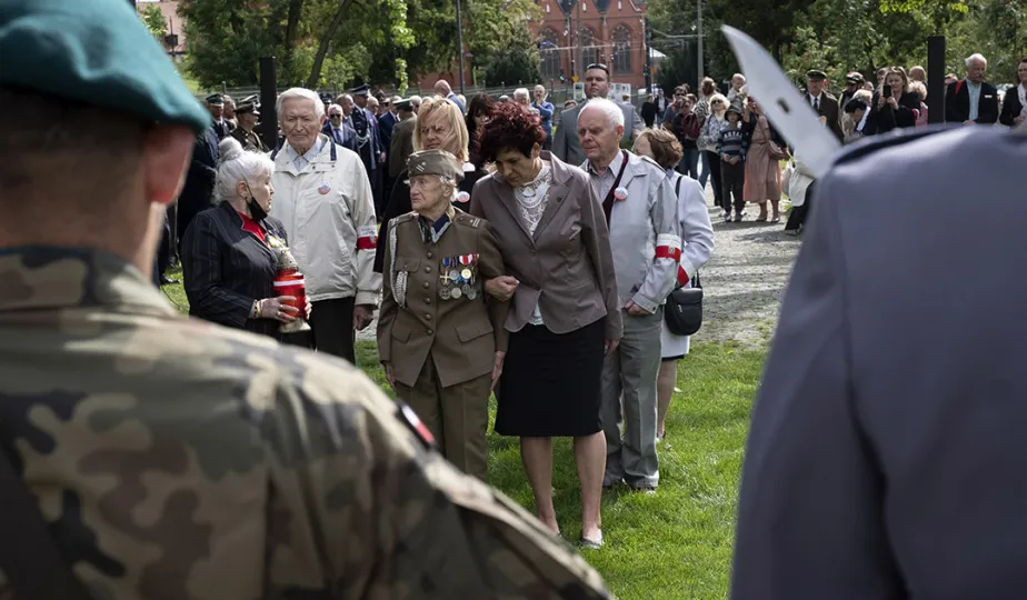 Uroczystości w ramach obchodów 82. rocznicy wybuchu II wojny światowej odbyły się w 1 września 2021 r. w Parku Pamięci Ofiar Zbrodni Pomorskiej 1939 r. W czasie uroczystości odsłonięto kolejną instalację parku - poświęconą przedstawicielom służb mundurowych - ofiarom Zbrodni Pomorskiej. Fot. Wojtek Szabelski, zdjęcia sprzed obeliska przy al. Św. Jana Pawła II - Mikołaj Kuras