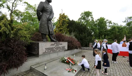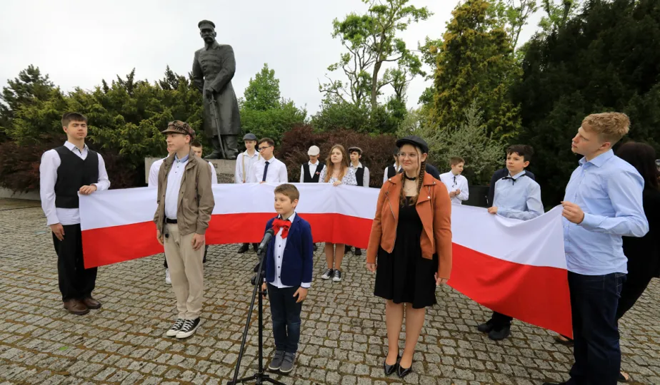 12 maja 2022 roku przypada 87. rocznica śmierci Marszałka Józefa Piłsudskiego. W tym dniu zastępca prezydenta Paweł Gulewski wraz z radnymi oraz dzieci ze Szkoły Podstawowej nr 31, której patronem jest marszałek, złożyli wiązanki kwiatów pod pomnikiem. Fot. Sławomir Kowalski