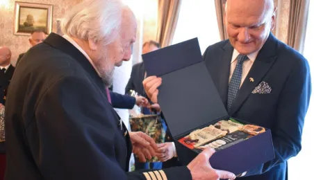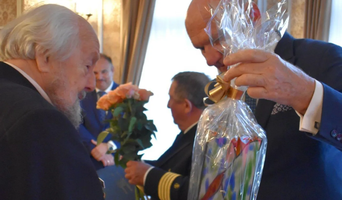 90. urodziny świętował w Sopocie kapitan żeglugi wielkiej inż. Zbigniew Sulatycki, inicjator Konwentu Morskiego i Forum Polonijnego. Na zaproszenie jubilata w spotkaniu z tej okazji uczestniczył prezydent Torunia Michał Zaleski. Fot. Katarzyna Cegielska