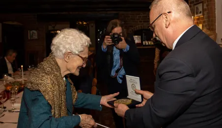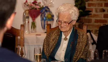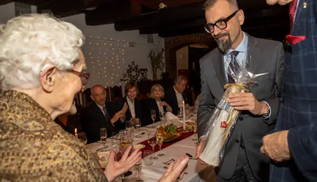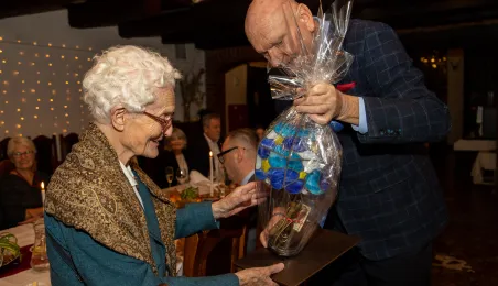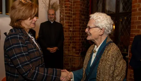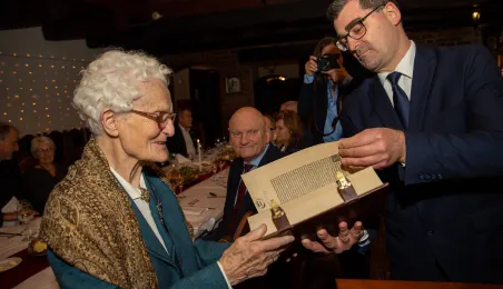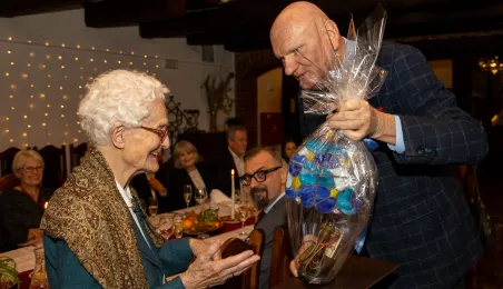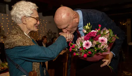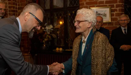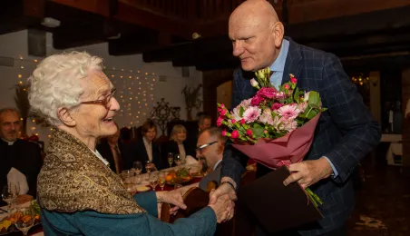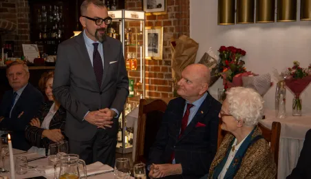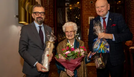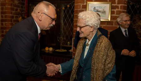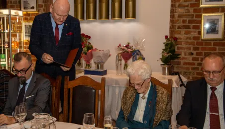 Doktor Cecylia Iwaniszewska, astronomka i działaczka społeczna, skończyła 95 lat. Życzenia dostojnej jubilatce złożyli m.in. prezydent Michał Zaleski i przewodniczący Rady Miasta Marcin Czyżniewski. Fot. Agnieszka Bielecka