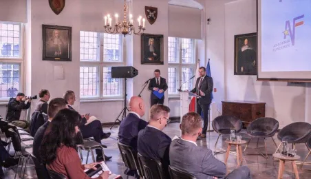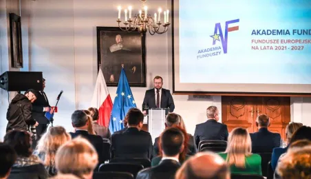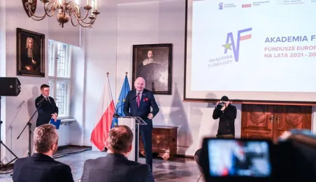 W toruńskim Ratuszu Staromiejskim odbyła się dziś, 24 października 2022 roku, Akademia Funduszy. Tematem spotkania, w którym wziął udział Grzegorz Puda, minister Funduszy i Polityki Regionalnej oraz prezydent Michał Zaleski, były fundusze europejskie na lata 2021-2027, które mogą trafić do naszego regionu. / fot. Lech Kamiński