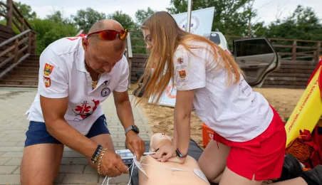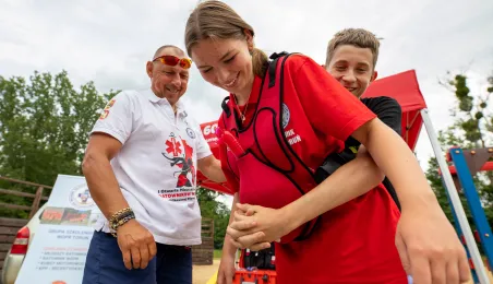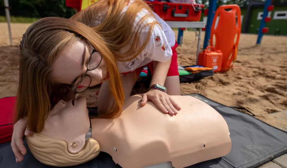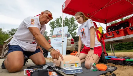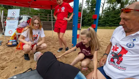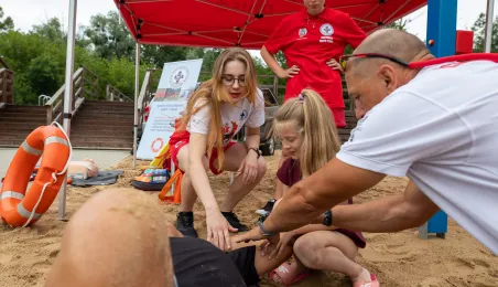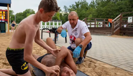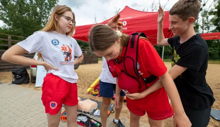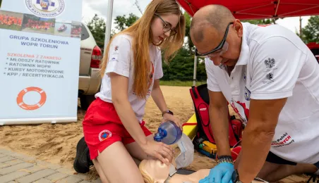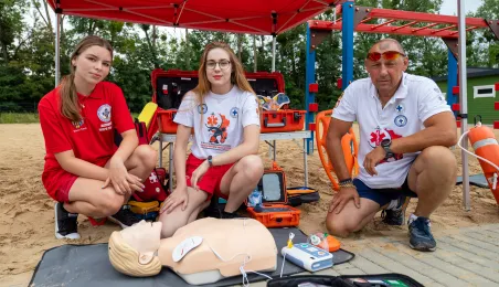 13 lipca 2023 r. na basenach letnich przy ul. Kujawskiej odbył się pierwszy pokaz ratownictwa wodnego pn. "Bezpieczne wakacje nad wodą". Pokazy będą odbywać się cyklicznie przez całe wakacje na wszystkich toruńskich basenach letnich. Fot. Agnieszka Bielecka