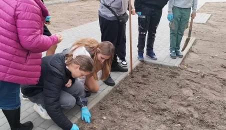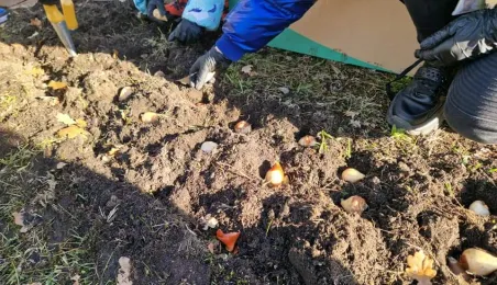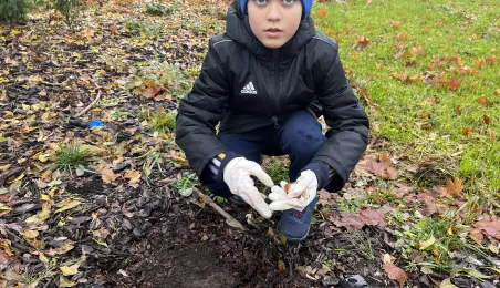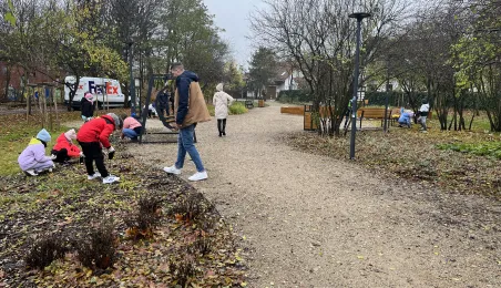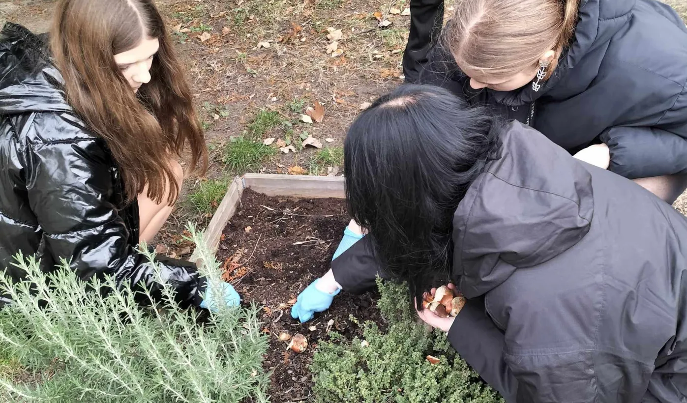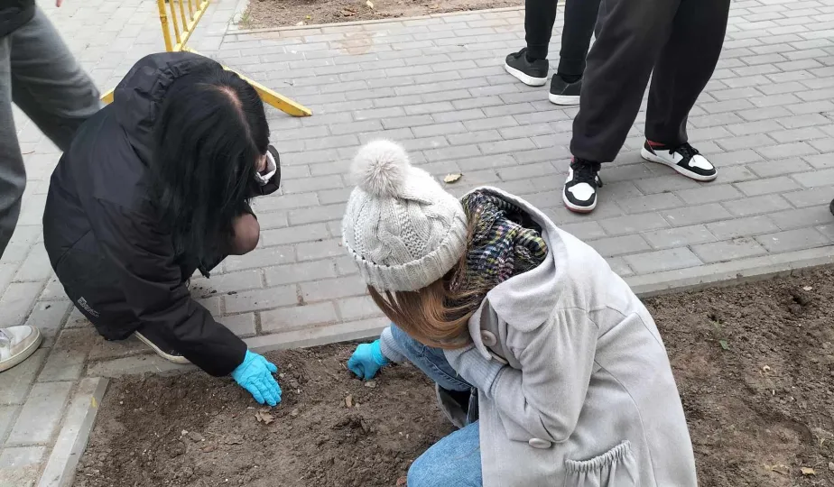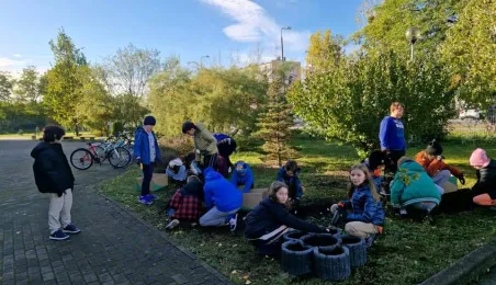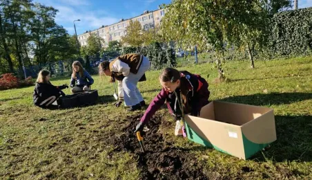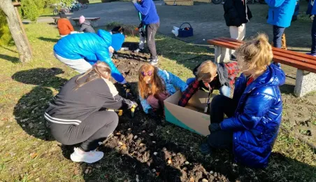 W listopadzie 2023 roku odbyła się akcja sadzenia tulipanów, które podarowali przedstawiciele Lejdy, miasta partnerskiego Torunia. W akcji wzięli uczniowie toruńskich szkól. / fot. WŚiE