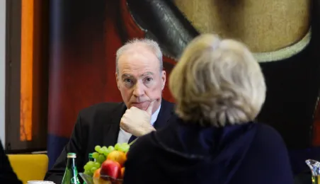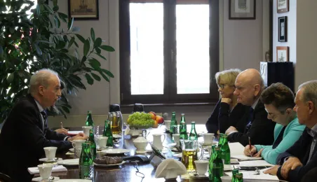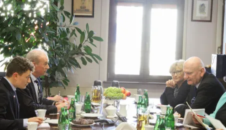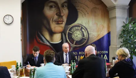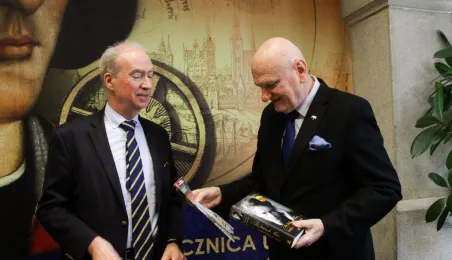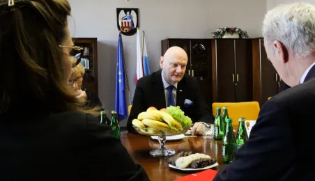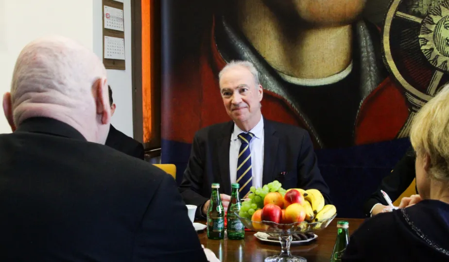 Etienne de Poncins - Ambasador Francji w Polsce przebywa z pierwszą swoją wizytą w Toruniu. 4 marca 2024 r. w Urzędzie Miasta Torunia spotkał się z nim Prezydent Michał Zaleski. / fot. Paula Gałązka