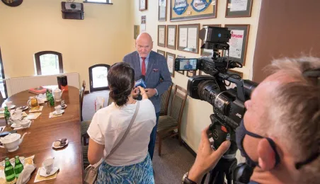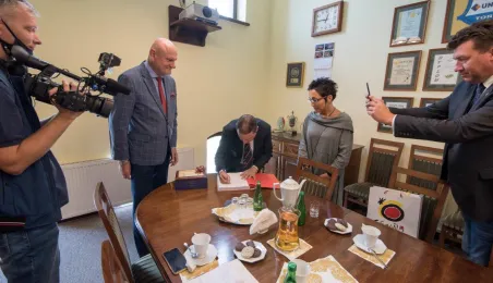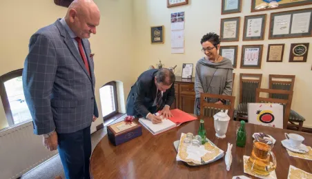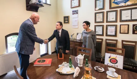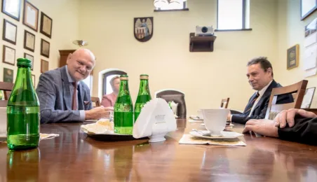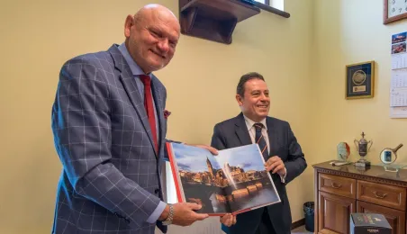 Ambasador Królestwa Hiszpanii w Polsce, Francisco Javier Sanabria Valderrama, spotkał się w piątek, 23 lipca 2021 r. z prezydentem Torunia Michałem Zaleskim. Wizyta dyplomaty związana była z uroczystościami odpustowymi z okazji Jubileuszowego Roku Jakubowego w kościele Świętego Jakuba Apostoła. Fot. Lech Kamiński