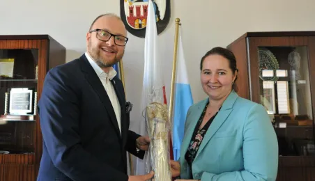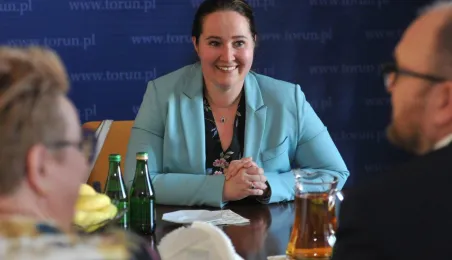 Pani Orsolya Zsuzsanna Kovács, Ambasador Węgier w Polsce, była gościem prezydenta Torunia Pawła Gulewskiego 17 maja 2024 r. Pani Ambasador kończy misję dyplomatyczną w Polsce i w maju odwiedza miasta, z którymi była szczególnie związana przez ponad 7 lat pełnienia swojej funkcji. Należy do nich Toruń. Fot. Małgorzata Litwin