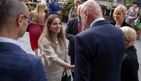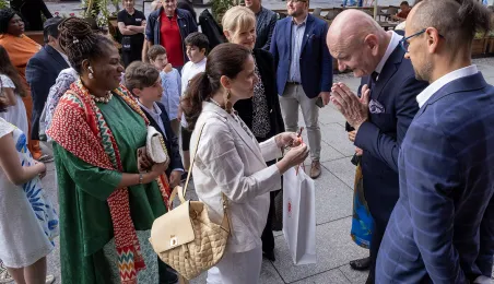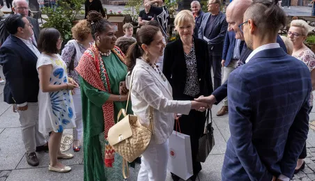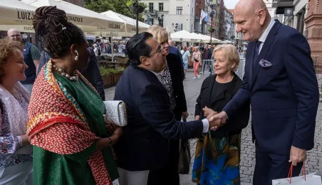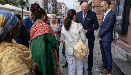 W trakcie dwudniowego (17-18 czerwca 2023 r.) pobytu w Grodzie Mikołaja Kopernika goście z ośmiu państw zwiedzają najważniejsze zabytki Torunia. Są wśród nich ambasadorzy Chile, Meksyku, Cypru i Irlandii oraz członkowie Stowarzyszenia Małżonków i Partnerów Szefów Misji Dyplomatycznych (SHOM) wraz z dziećmi. Fot. Wojtek Szabelski
