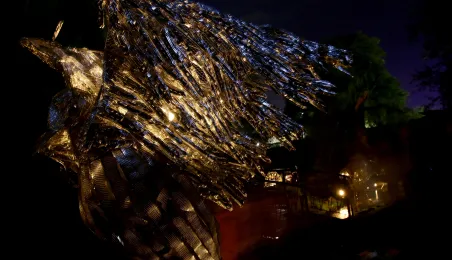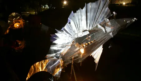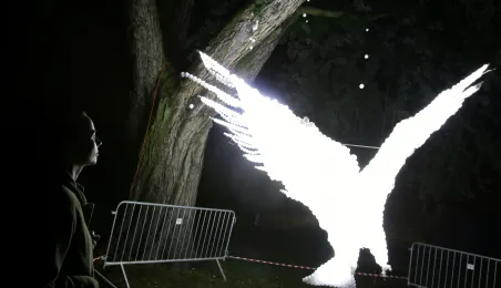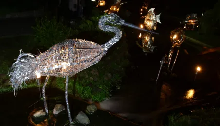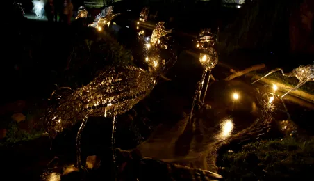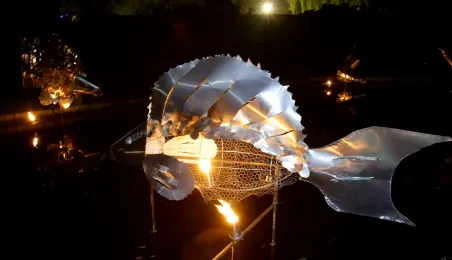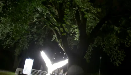Do 27 sierpnia 2017 r. w Toruniu trwa Bella Skyway Festival. Świetlne instalacje można ogladać w 16 punktach starówki i jej otoczenia, m.in. w Dolinie Marzeń i na placu Rapackiego. Wydarzeniem towarzyszącym festiwalowi jest spektakl teatru Avatar "Pieśń Bugajów", prezentowanu w Centrum Nowocześności Młyn Wiedzy przy ul. Łokietka. Fot. Adam Zakrzewski