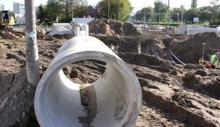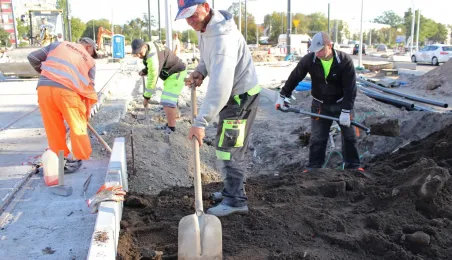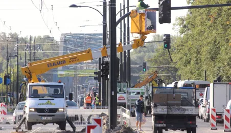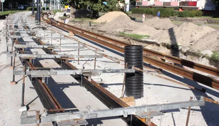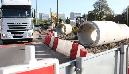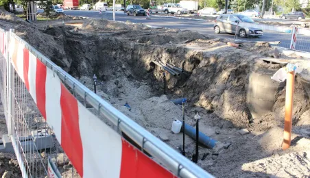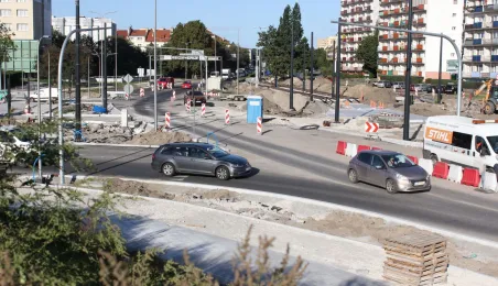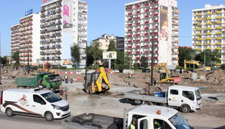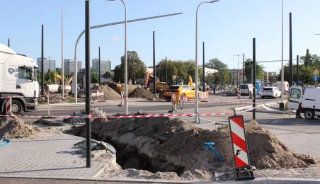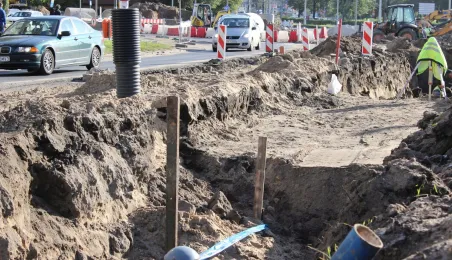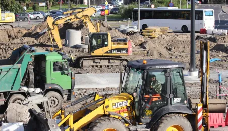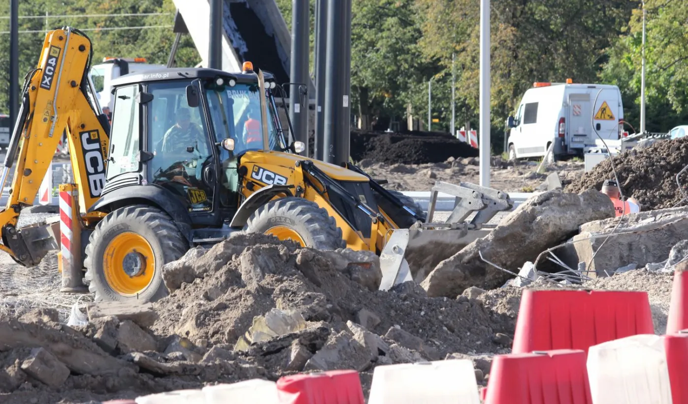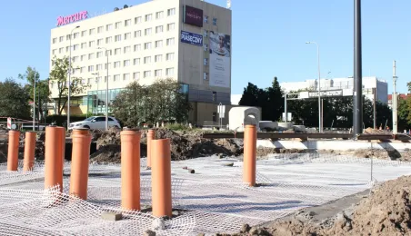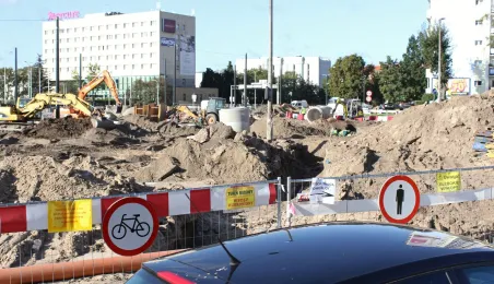 W Toruniu trwa projekt "Przebudowa układu torowo-drogowego w ul. Wały gen. Sikorskiego i al. Jana Pawła II wraz z budową pasa tramwajowo-autobusowego w Toruniu – BiT City II". Na placu Rapackiego powstaje m.in. węzeł integrujący środki komunikacji miejskiej, a na pl. Niepodległości - rondo. Łączny koszt projektu to ponad 72 mln zł, w tym ponad 36 mln zł z Europejskiego Funduszu Rozwoju Regionalnego. Fot. Adam Zakrzewski