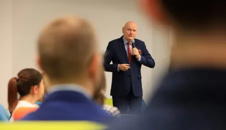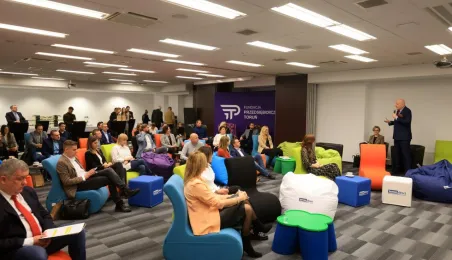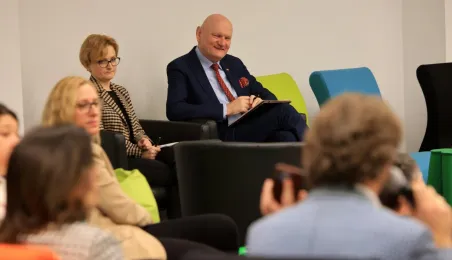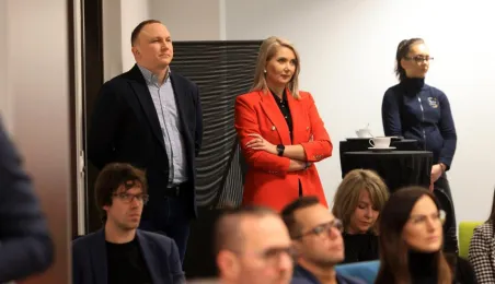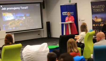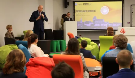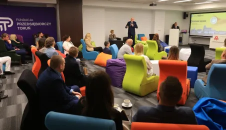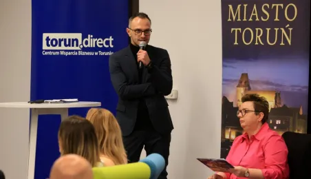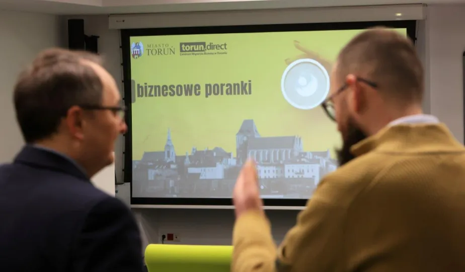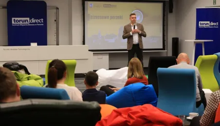Przedstawiciele firm marketingowych spotkali się 22 lutego 2024 r. o poranku z Prezydentem Michałem Zaleskim w Toruńskim Inkubatorze Technologicznym, żeby porozmawiać o możliwościach rozwoju oraz podzielić się swoimi spostrzeżeniami i doświadczeniami w prowadzeniu biznesu w Toruniu. Fot. Sławomir Kowalski