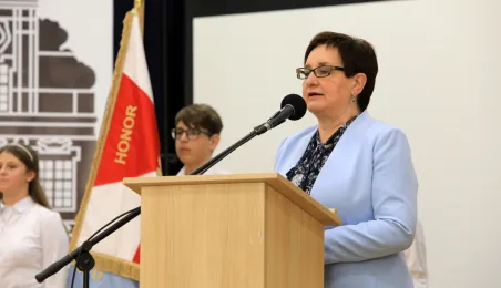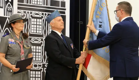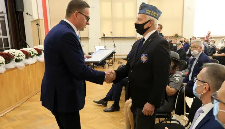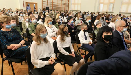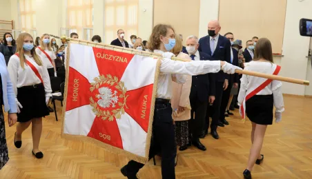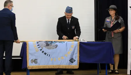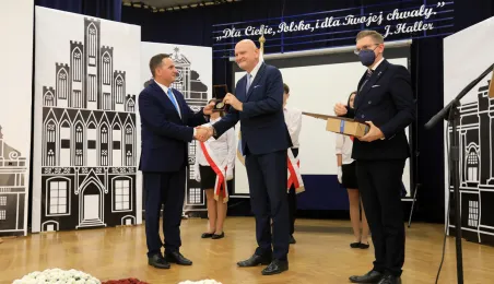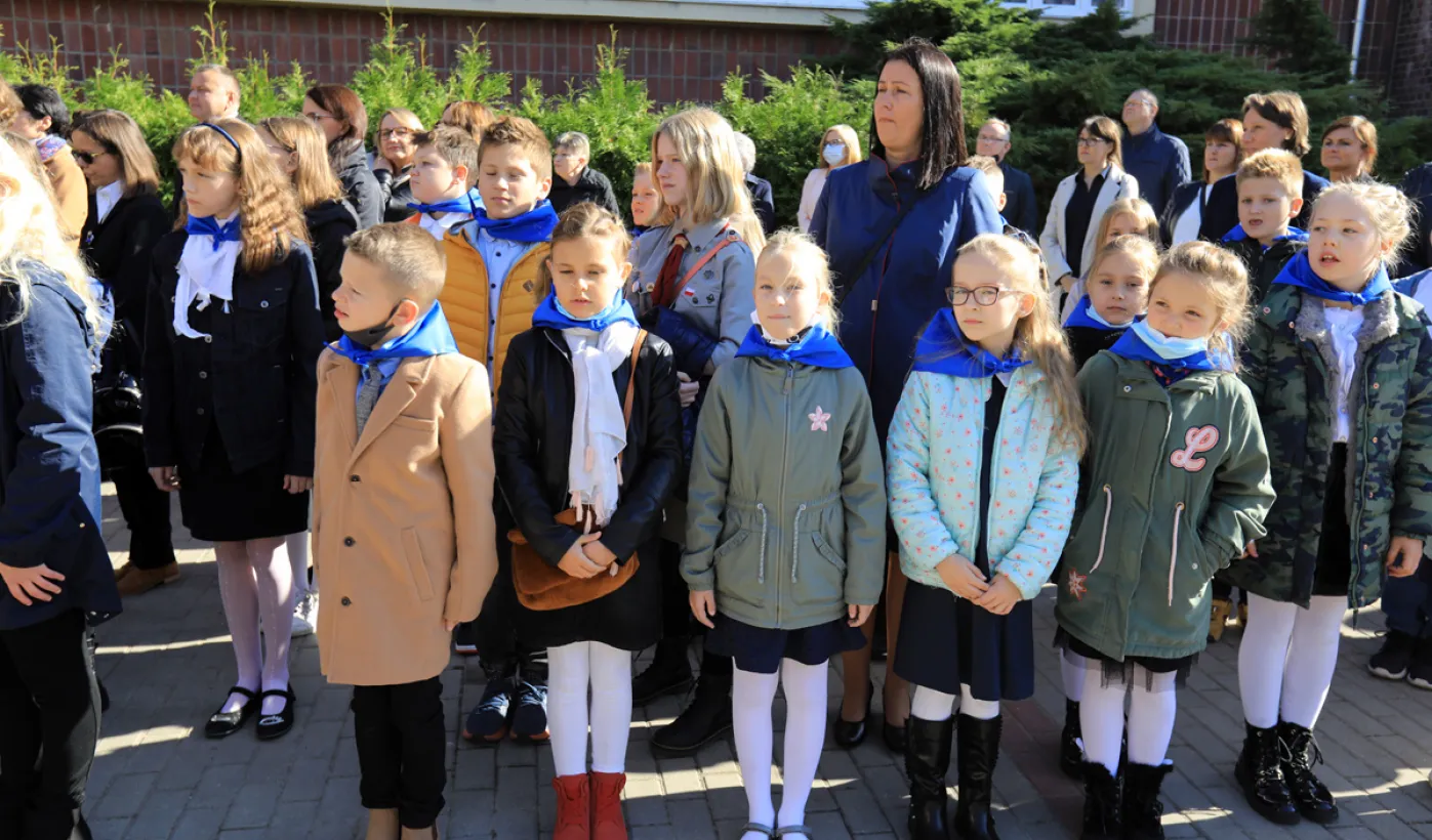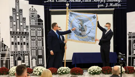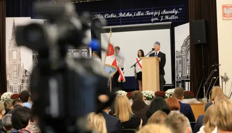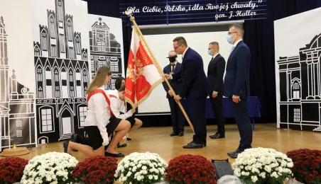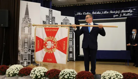 Szkoła Podstawowa nr 14 w Toruniu nosi od 8 października 2021 r. imię Błękitnej Armii. Uroczystość z tej okazji rozpoczęło odsłonięcie na budynku placówki repliki rewersu sztandaru szkoły. Następnie w auli szkolnej oficjalnie nadano imię oraz przekazano sztandar, który ufundowało Stowarzyszenie Weteranów Armii Polskiej w Ameryce. Prezydent Torunia Michał Zaleski, wraz z wiceprzewodniczącym Rady Miasta Torunia Adrianem Mólem, wręczył szkole na ręce dyrektora Ireneusza Woźniaka medal 100-lecia powrotu do wolnej Polski. Fot. Sławomir Kowalski