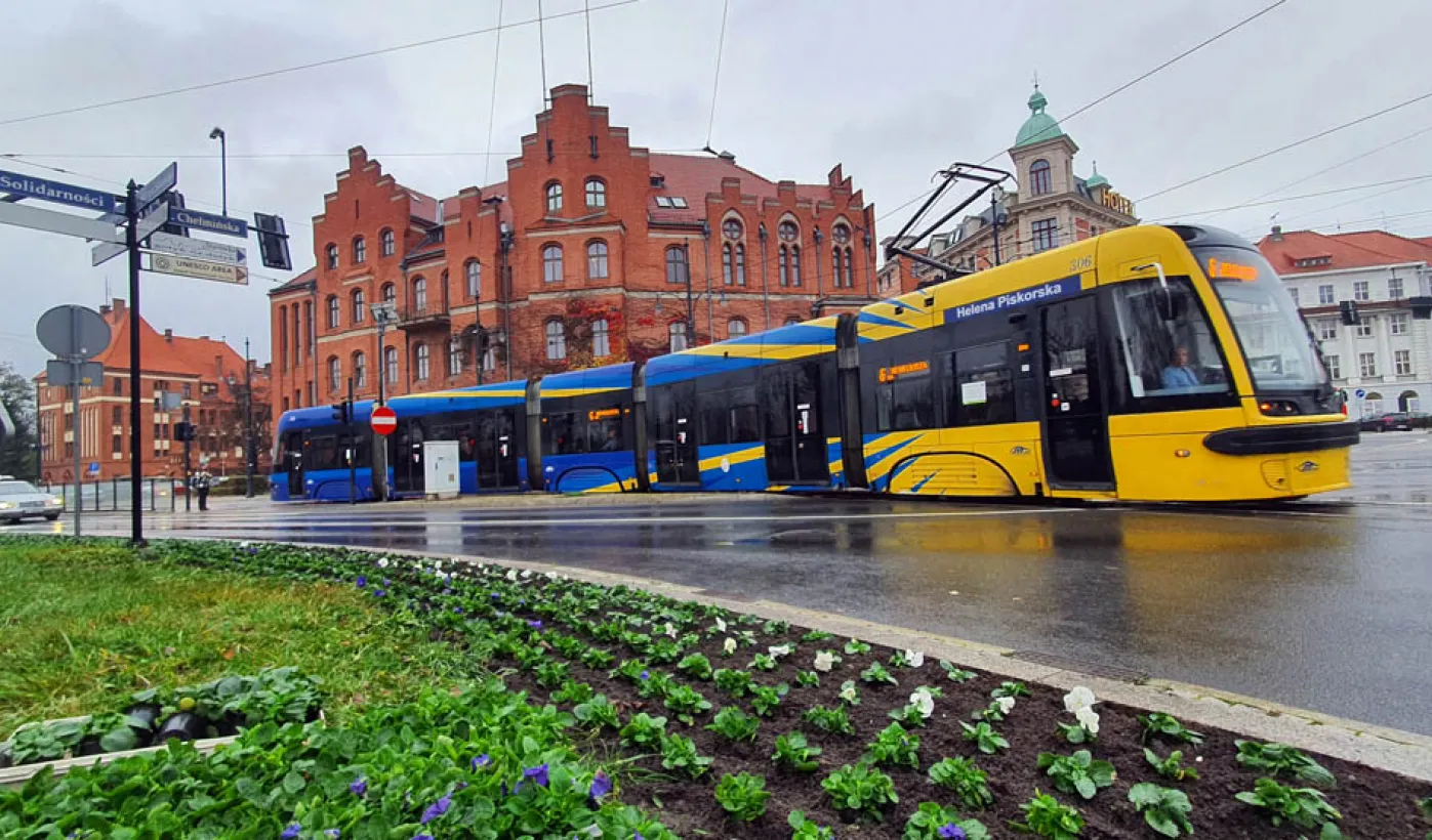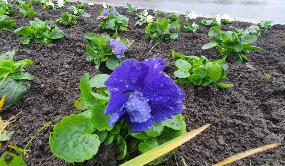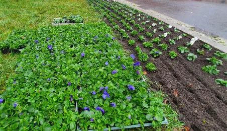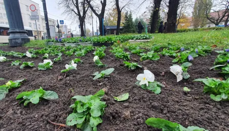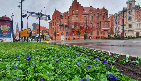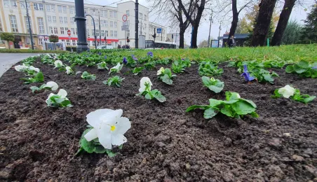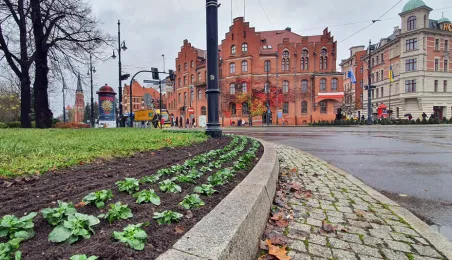W Toruniu nadal panuje aura sprzyjająca zieleni. 15 listopada 2023 r. na placu Teatralnym zostały posadzone biało-niebieskie bratki. Fot. Małgorzata Litwin