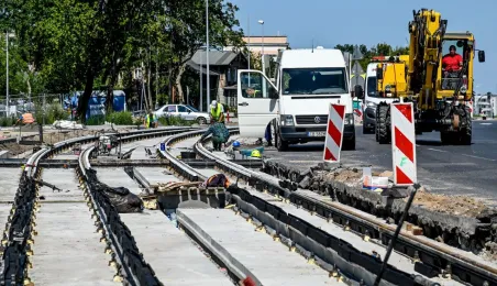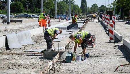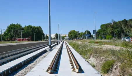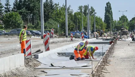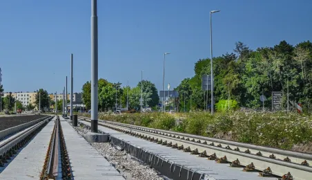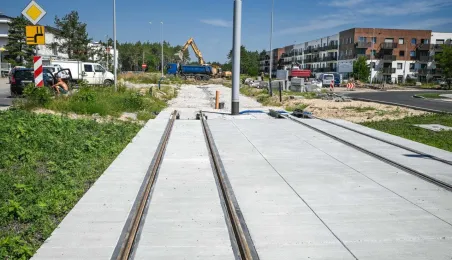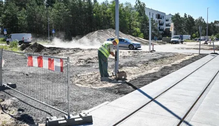 Zaawansowanie prac na budowie nowej linii Tramwajowej zbliża się do 50 procent. Prace toczą się równolegle na kilkunastu odcinkach. W kilku miejscach widać już niemal gotowe torowisko.