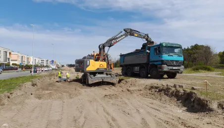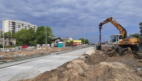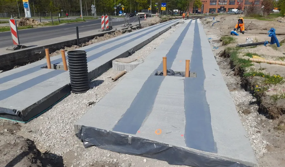 Układają podbudowę pod przyszłe torowisko, przebudowują ciepłociąg, wylewają płyty torowe, montują szyny, kładą chodniki i asfalt – na każdym odcinku budowy nowej linii tramwajowej sporo się dzieje. Już niebawem prace wkroczą na kolejny etap, co wiąże się ze zmianami w organizacji ruchu drogowego. Fot. Miejski Zakład Komunikacji