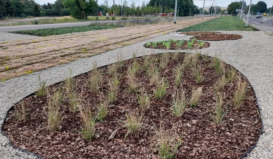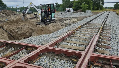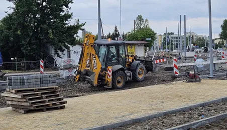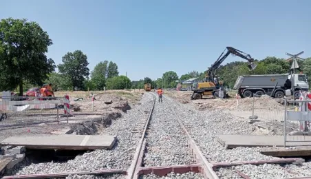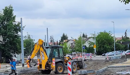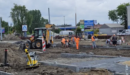 Budowa nowej linii tramwajowej na północ Torunia zbliża się do ostatniej prostej. Na odcinku od przejazdu kolejowo-drogowo-tramwajowego na ul. Legionów do ronda Strobanda gotowe jest już torowisko, sieć trakcyjna i układ drogowy. Na dwóch pozostałych częściach trwają jeszcze prace. / fot. MZK Toruń