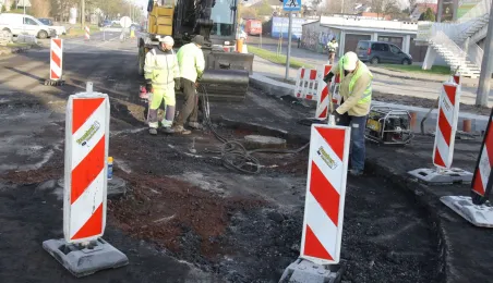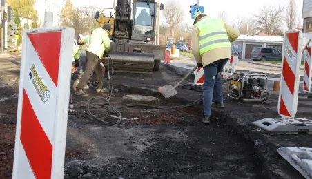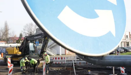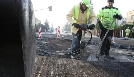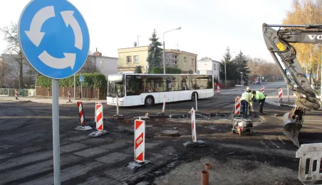 Do końca listopada 2020 r. ma potrwać budowa ronda na skrzyżowaniu ulic Legionów oraz Żwirki i Wigury. Prace realizuje firma Transbruk Barczyńscy, a ich koszt to niespełna 239 tys. zł. Fot. Adam Zakrzewski
