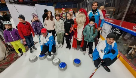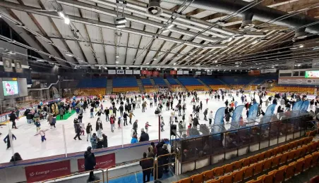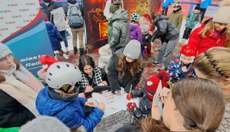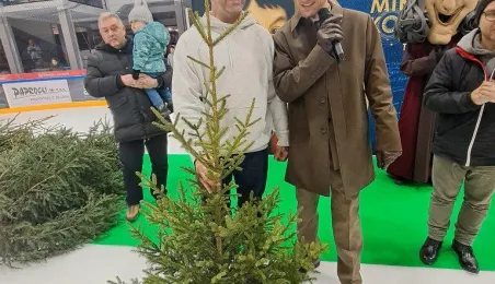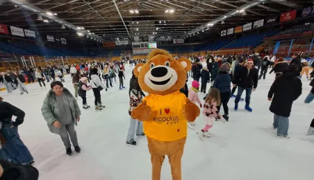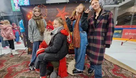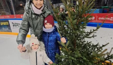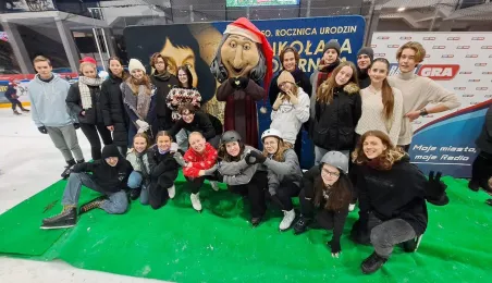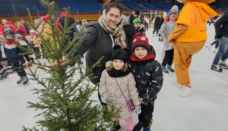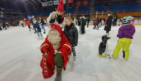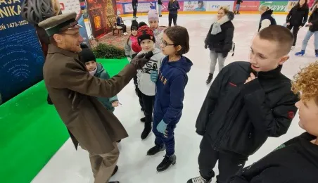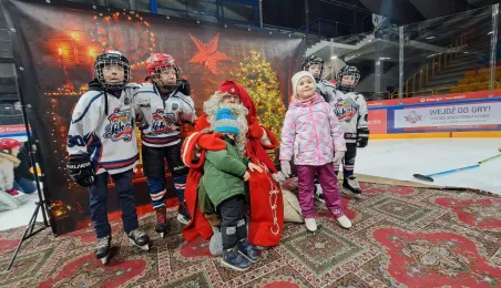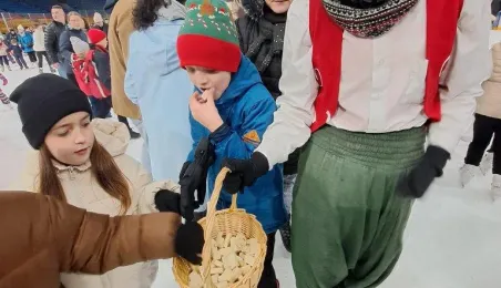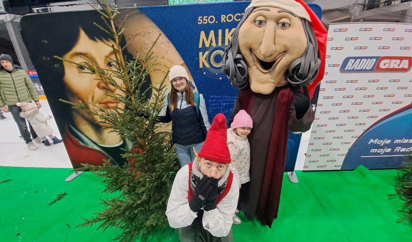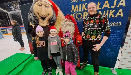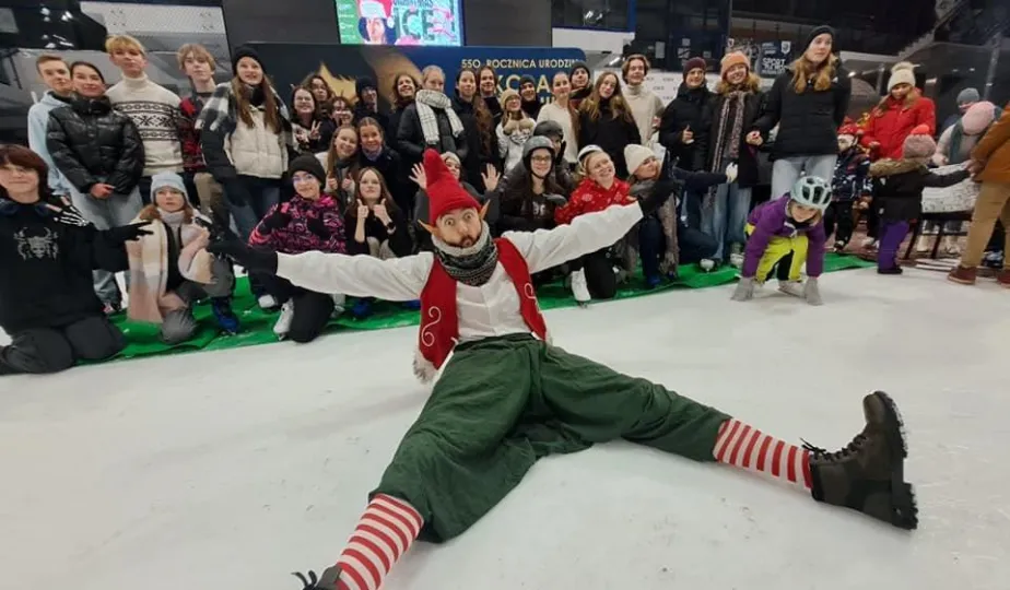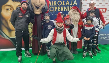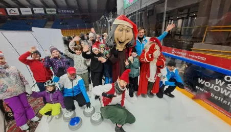 Święty Mikołaj z elfami, wizyta Mikołaja Kopernika, konkurs hokejowych rzutów karnych z Sokołami Toruń, pokaz grupy synchronicznej Team Lesoleil i drzewka bożonarodzeniowe od Nadleśnictwa Toruń. Tak wyglądała w czwartek 14 grudnia 2023 r. Wielką Świąteczna Ślizgawka Christmas on Ice na lodowisku Tor-Tor. Fot. Stowarzyszenie GoSport!