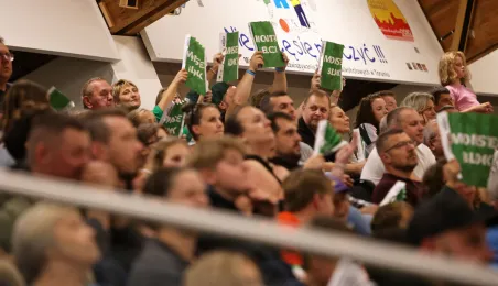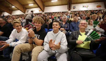 Po dwóch wyjazdowych zwycięstwach siatkarze CUK Aniołów zaprosili kibiców na pierwszy mecz w Toruniu. Przed własną publicznością 3:1 w setach pokonali zespół z Sieradza. Fot. Sławomir Kowalski