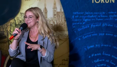 W ramach sekcji kulturoznawczej Światowego Kongresu Kopernikańskiego w czwartek 14 września 2023 r. w Ratuszu Staromiejskim Muzeum Okręgowego odbyła się debata "Czy Kopernik nas jeszcze kręci? – Sztuka opowieści o dziele i życiu wybitnych osobowości". Fot. Agnieszka Bielecka