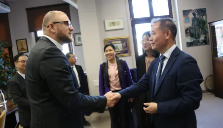 25 czerwca 2024 r. Urząd Miasta Torunia odwiedziła delegacja z miasta partnerskiego Guilin na czele z zastępcą burmistrza panem Wang Xin odwiedzili Toruń. Spotkał się z nimi prezydent Paweł Gulewski. / fot. Paula Gałązka