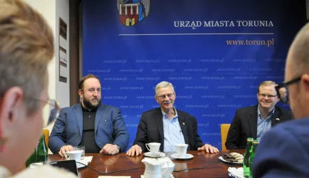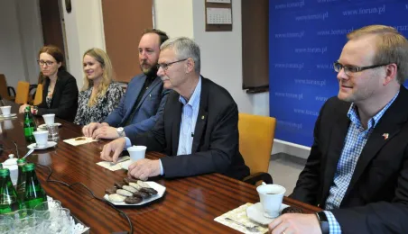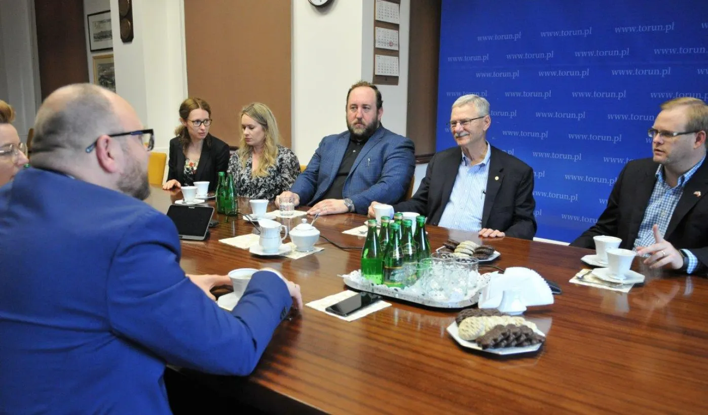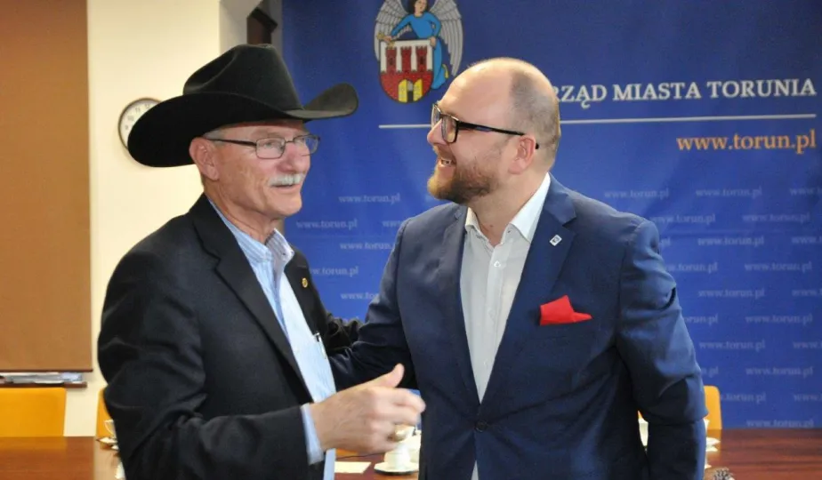 Prof. Jim Mazurkiewicz – animator współpracy polsko-amerykańskiej w naszym województwie, był 24 maja 2024 r. gościem prezydenta Torunia Pawła Gulewskiego. Rozmawiano o planach współpracy w sferze gospodarczej, kulturalnej i edukacyjnej. Fot. Małgorzata Litwin