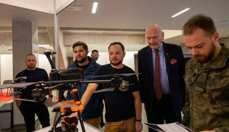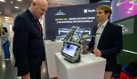 Ósma edycja DroneTech World Meeting odbywa się w Toruniu od 11 do 13 października 2023 r. Wydarzenie dostarcza uczestnikom ogromną dawkę wiedzy, inspiracji i szans na budowę relacji z twórcami i użytkownikami technologii bezzałogowych. W otwarciu wydarzenia udział wziął prezydent Michał Zaleski. Fot. Agnieszka Bielecka