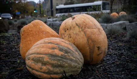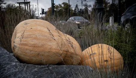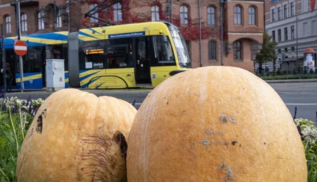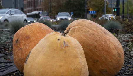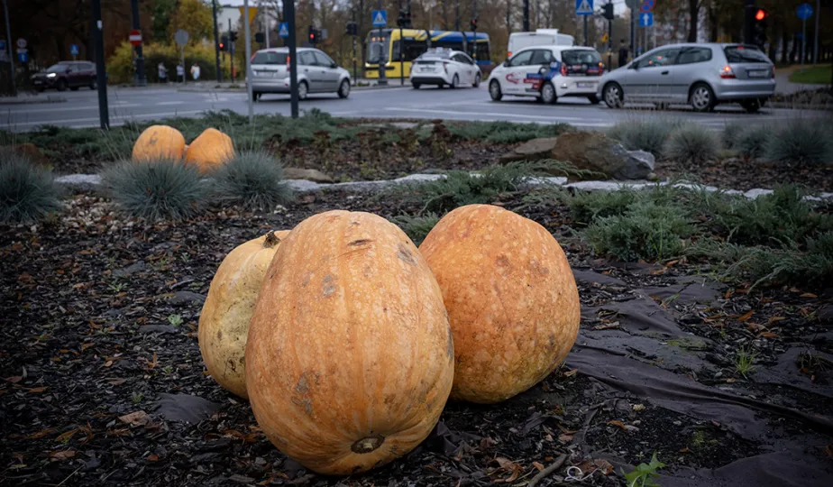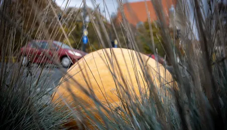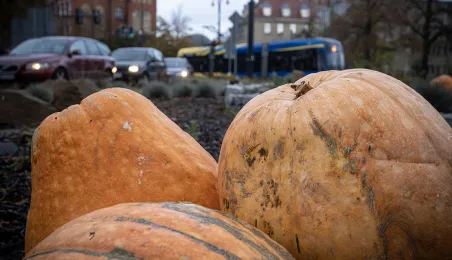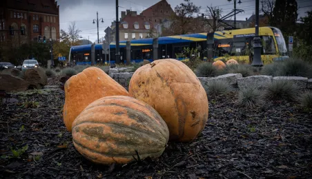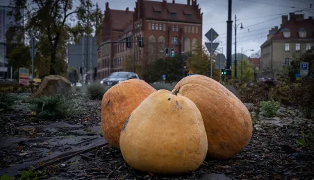 Spacerujący w okolicach starówki dostrzegą w kilku miejscach okazałe dynie. W ten sposób Toruń oswaja jesienny czas.