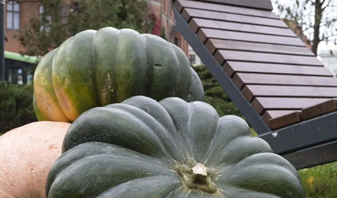 Spacerujący w okolicach starówki od 22 października 2021 r. dostrzec mogą w kilku miejscach okazałe dynie - jeden z symboli jesieni. W ten sposób Toruń oswaja tę porę roku. Owoce nie tylko wspaniale sprawdzają się w potrawach, ale są również niezwykle dekoracyjne. Dlatego właśnie Biuro Ogrodnika Miejskiego rozłożyło prawie 30 pomarańczowych kul w reprezentacyjnych punktach miasta. Gdy już nacieszą oczy, zostaną przekazane toruńskiemu Ogrodowi Zoobotanicznemu i posłużą za karmę dla zwierząt. Fot. Wojtek Szabelski