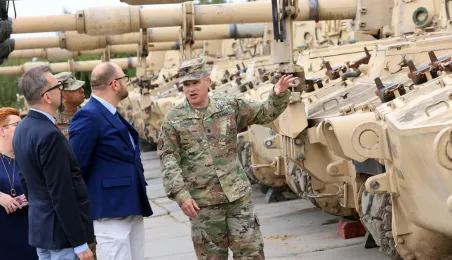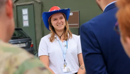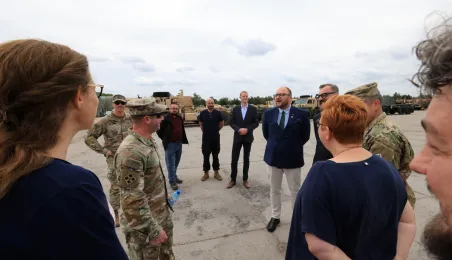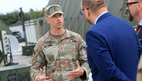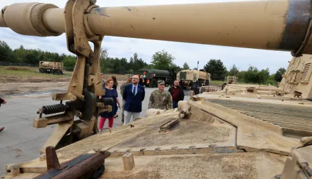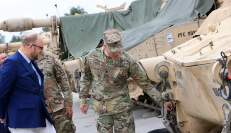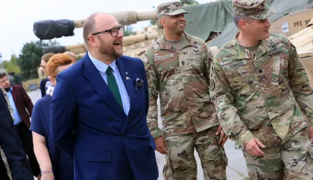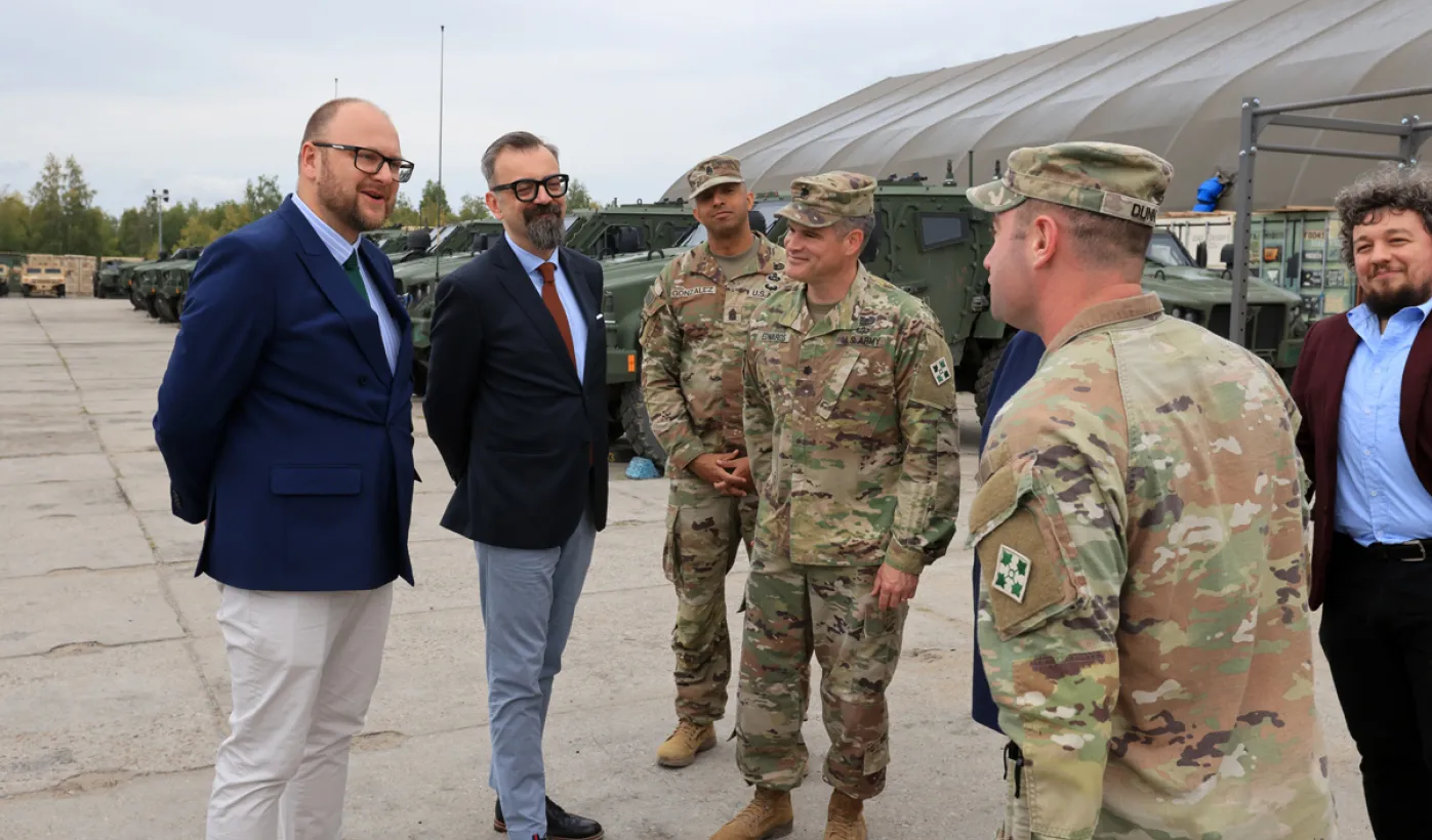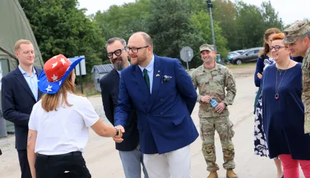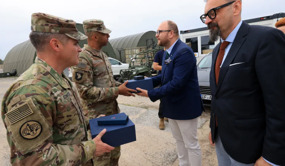 4 lipca 2024 r., w rocznicę ogłoszenia Deklaracji Niepodległości Stanów Zjednoczonych, przedstawiciele toruńskiego samorządu odwiedzili stacjonujących w Toruniu amerykańskich żołnierzy. Wraz z towarzyszącym mu zastępcą przewodniczącego Rady Miasta Torunia Marcinem Czyżniewskim prezydent Torunia przekazał na ręce dowódców amerykańskiego oddziału - lieutenanta colonela ppłk. Jonathana Edwardsa i sergeant mjr.Josepha Gonzaleza - okolicznościowe upominki: flagę miasta Torunia, wieczne pióra i toruńskie pierniki. Następnie gospodarze oprowadzili gości po terenie swojego toruńskiego campu, w którym mieszka obecnie kilkuset amerykańskich żołnierzy. Zdjęcia: © UMT 2024, autor: Sławomir Kowalski, licencja: CC BY-NC 4.0