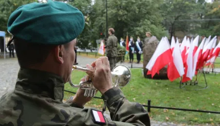 W dniu 27 września 2020 r. z okazji Dnia Polskiego Państwa Podziemnego odbyła się uroczystość patriotyczna pod obeliskiem na placu św. Katarzyny. Fot. Adam Zakrzewski